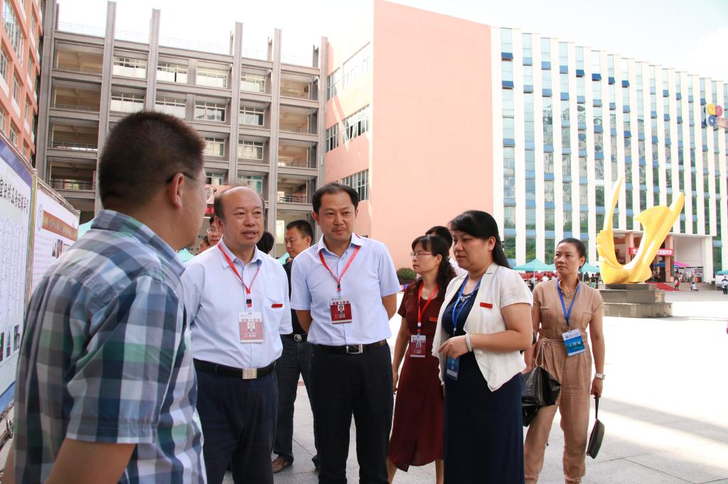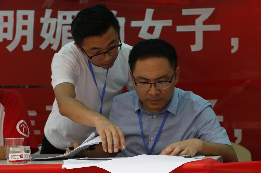 中午13点,烈日炎炎。吴俊、刘海涛相继来到文公司迎新点,慰问工作人员,关怀新生;韦丹、陈亦桥更是全天指导和陪伴现场的师生开展迎新工作。