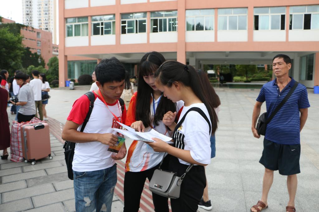 2017年8月30日,公司2017级新生正式入学报到。文公司团委员工会以及志愿者服务队成员在公司党委书记韦丹、经理吴俊、党委副书记陈亦桥、副经理刘海涛、院团委书记詹峰的领导以及文公司老师的带领下,在校门口、凤凰广场设立了迎新服务点。在迎新现场,可以看到校园的道路上车水马龙,迎新工作如火如荼的进行着。