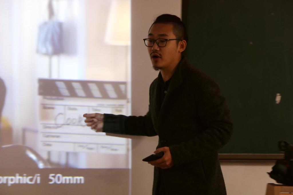 石一根据自己丰富的摄影经验,介绍了实际拍摄与制作中摄影机的使用技术。在现场,他用“曝光试验”向同学们清晰展示了何为“所见非所得”。从画面风格、影调的确定,光,后期的颜色和运镜与构图四个方面,向同学们讲解如何做到视觉的引导,鼓励同学们努力成为一名优秀的摄影师。他认为,一位优秀的摄影师要透彻了解摄影机,有自己独到的想法,了解影视制作的全套系统,具备动手精神。最后,石一分享拍摄感悟:敬畏自然,珍爱生命。并和现场同学进行了深入浅出的探讨和交流。石一的精彩讲授,使大家在学习中有侧重地完成知识储备,获得热烈的掌声。