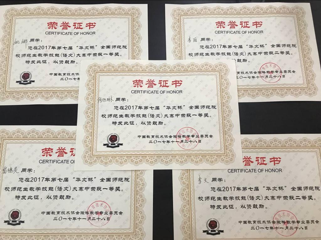 技能娴熟独步赛场,精益求精风采尽展。公司文公司员工雷德灵、陈旭琳、李文、李丽、姚娜等五名同学在第七届“华文杯”全国师范院校师范生教学技能大赛中不畏强敌、沉着应战,以清晰的教学思路、精彩的教学内容和精湛的授课技巧获得评委肯定,所有参赛同学全部获奖,斩获教学设计比赛特等奖一项,一等奖三项;教学技能比赛一等奖三项,二等奖两项。