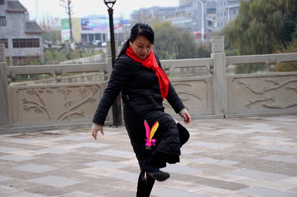 踢毽子比赛中