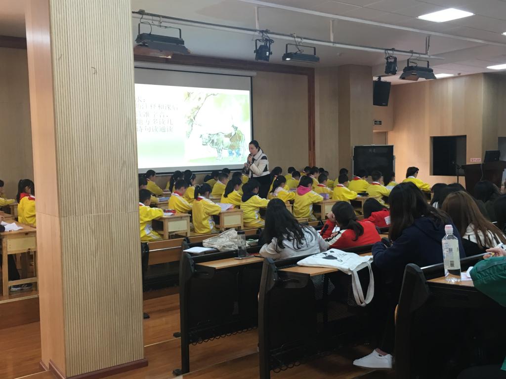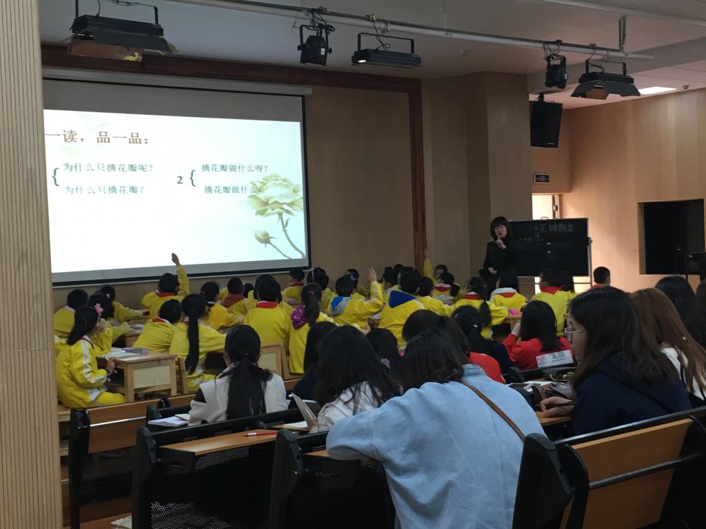 当天的见习活动主要是到花果园第二小学进行示范课观摩,由花果园第二小学冯黔君老师执教《花瓣飘香》,刘玲老师执教《永远的白衣天使》,陈俊禹老师执教《所见》,三位老师分别从传统阅读课、翻转课堂、古诗词吟诵三种教学类型展开示范,让员工感受了小学语文不同课型的基本形态和教授方法,三位老师规范的教学仪态,生动的阅读辨析以及循循善诱的教学方法让见习员工得到了一次良好的教学熏陶,也缩短了理论与实践的距离。