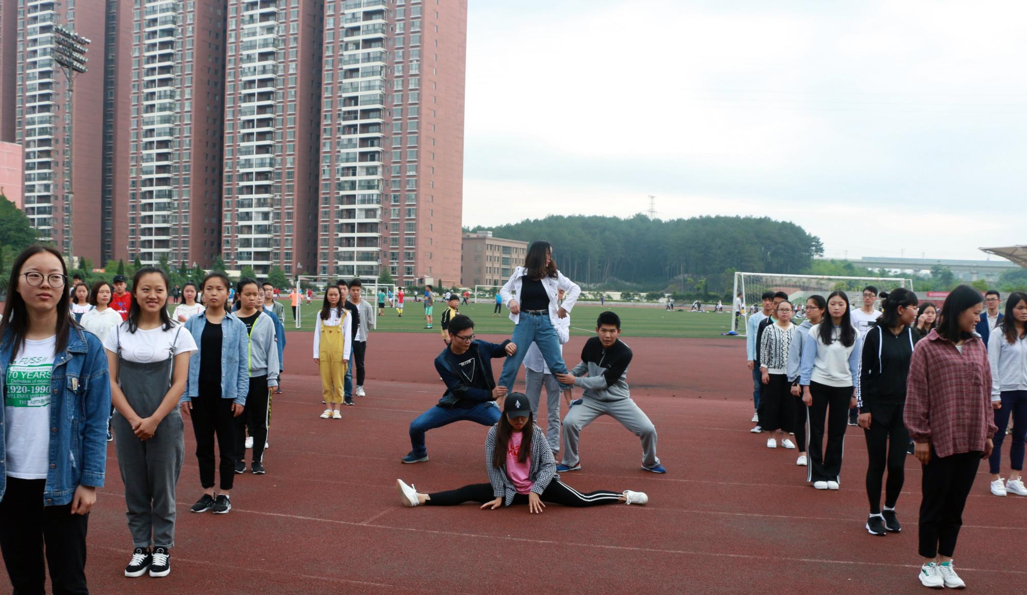 5月7日,文公司体育节开幕式方阵训练在运动场开展。院团委员工会副主席华夏组织开展训练,公司64名同学参与其中。