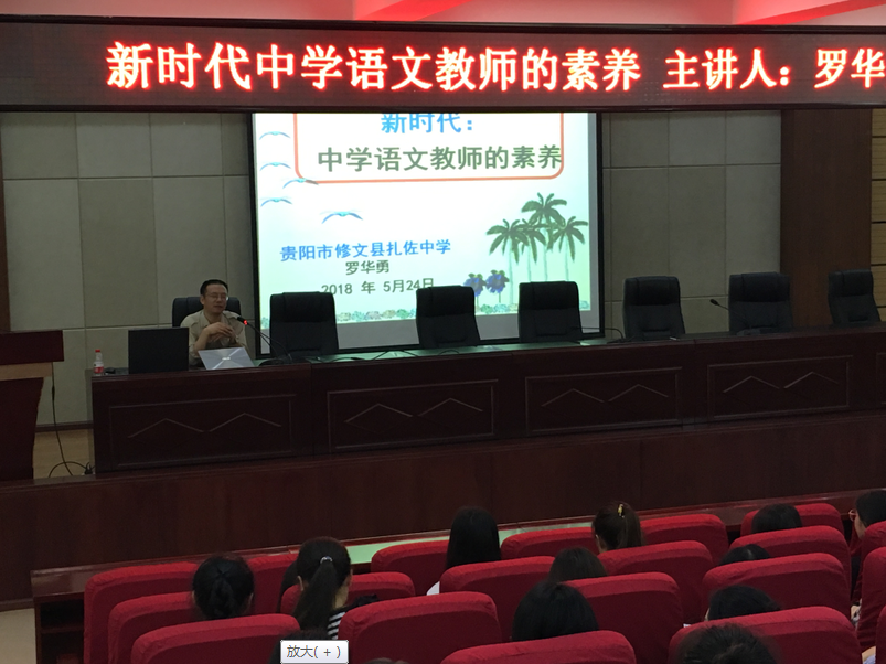 5月24日,文公司邀请贵州省中学语文教学名师罗华勇前来公司,在文韬苑二楼学术讲堂,以《新时代中学语文教师的素养》为题为2019届汉语言文学、汉语国际教育两个专业的150余名实习生作专题讲座,系统讲授中学语文教学以及实习工作的相关问题。