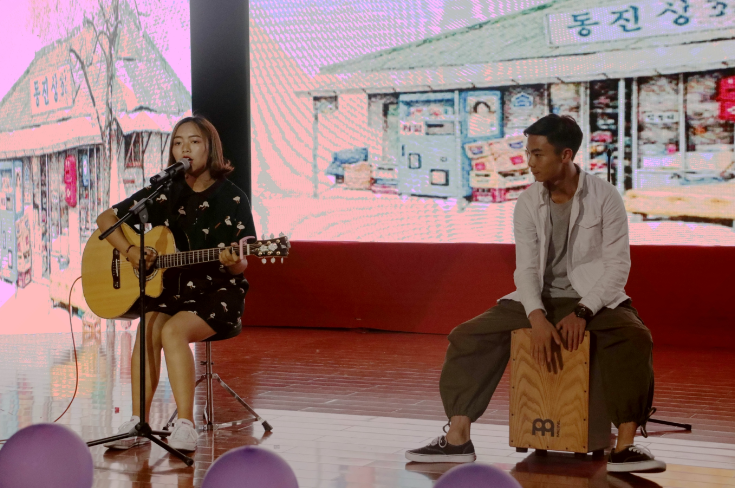 伴点乐队以一首《不说再见》,点燃了现场,正式拉开晚会的序幕。在大屏幕上,同学们也为即将离开教学岗位的经理吴俊发表了祝福寄语,吴俊随后抒发了不舍也为本次欢送会致辞。他首先向圆满完成学业的毕业生们表达了真诚的祝贺,勉励他们在新的人生历程上继续学习。同时,他也对毕业生提出了几点希望,一是怀揣理想,不断学习;二是克服自卑,勇担重任;三是怀寄乡愁,常回家看看。真诚的祝福与殷切的希望过后,便是精彩的节目表演。