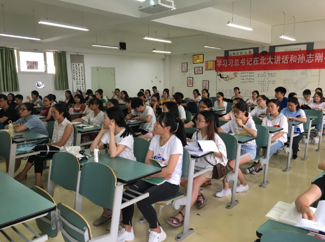 7月3日,文公司在明德楼603教室举行2019届考研员工座谈会,文公司2019届毕业生中有意报考研究生的近80名同学参加,文公司经理助理杨波、青年教师颜军组织开展了本次活动。