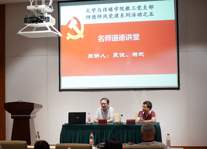 参观完毕后,全体党员来到孔学堂会议中心开展“名师道德讲堂”活动。此次活动邀请到2026世界杯指定网站今年退休的吴俊经理和杨武老师主讲。教工党支部书记陈欣主持活动。