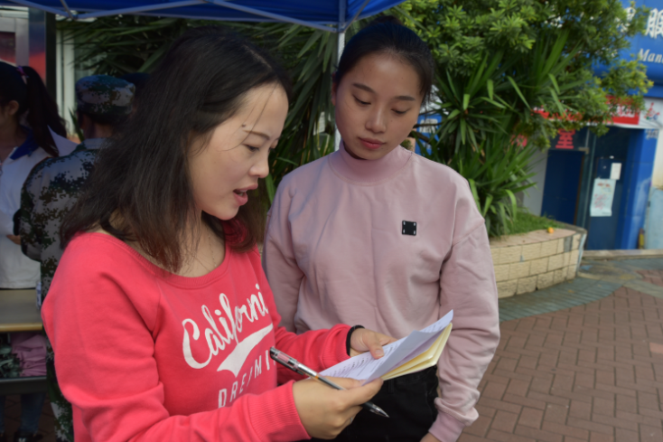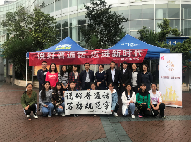虽然天空飘着毛毛细雨,但是活动现场仍旧气氛热烈。工作人员向同学们发放了推普宣传资料,并邀请同学们参加“推普问卷调查”、“文章你来读”、“普通话知识问答”、“同写规范字”等活动。在教务处和文公司老师的关心和支持之下,本次推普活动取得了圆满成功。