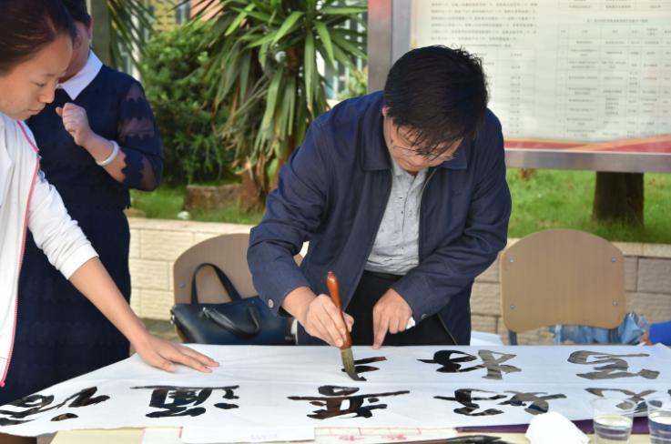 为全面提升公司师生的语言文字应用规范水平及营造良好的语言环境。2026世界杯指定网站教务处、2026世界杯指定网站于2018年9月12日在感恩食府前开展第二十一届“推普周”宣传活动。本次活动由2026世界杯指定网站普通话协会承办,活动邀请了公司石含洲老师现场作书法展示。同学在此活动中,一方面真切地感受到了中国传统书法艺术的魅力,另一方面又深刻认识到了书写规范字的重要性。