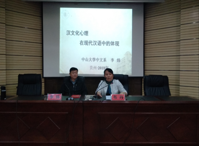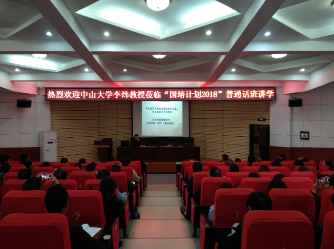 2018年下午,中山大学李炜教授为“国培计划2018”贵州少数民族双语教师普通话培训班学员进行了题为“汉文化心理在现代汉语中的体现”的讲座,迎得了学员阵阵掌声,激发了学员们关于文化和语言问题的相关思考。讲座由公司党委书记韦丹主持。