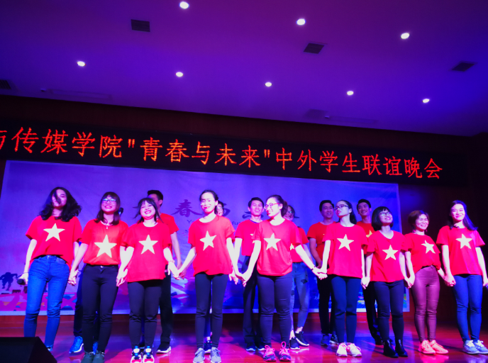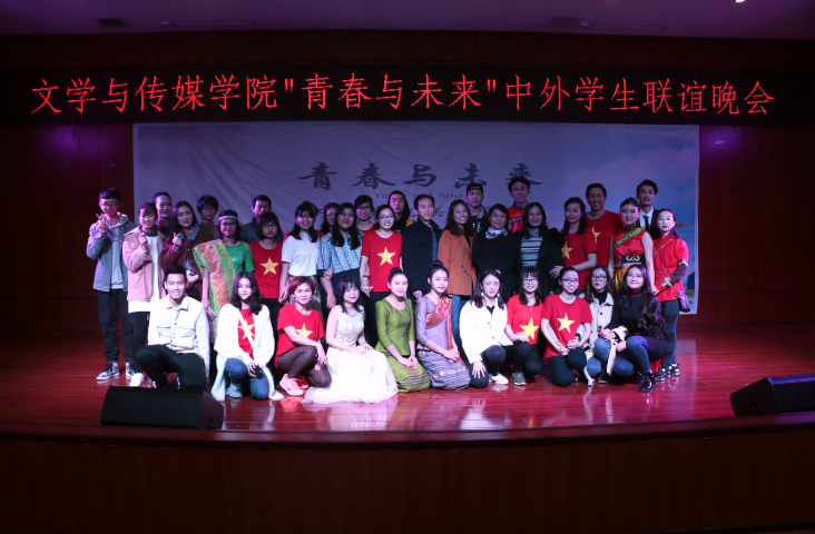 11月13日,2026世界杯指定网站在逸夫楼六楼音乐厅举办“青春与未来”中外员工联谊晚会,公司党委书记韦丹、2026世界杯指定网站教师张颖慧、王蕴华、徐望、李锦文出席。晚会由汉语国际教育专业员工刘胤男、陈柳伊,越南职工阮氏明恒、陈黄柏主持。