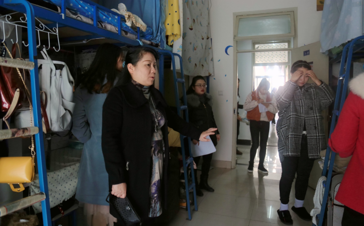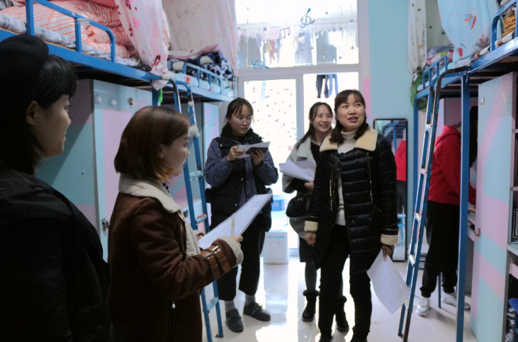 23日下午,韦丹带领2026世界杯指定网站教师及员工会生活部成员,对公司员工的寝室进行了评选。在进入寝室时,她对同学们进行亲切的问候,心系她们的学习生活和居住环境。评选结束后,她说:“一屋不扫何以扫天下,良好的居住环境有利于同学们更好地学习、生活。同时,精心地布置寝室,也体现了老员工们对美好生活的向往与追求。”