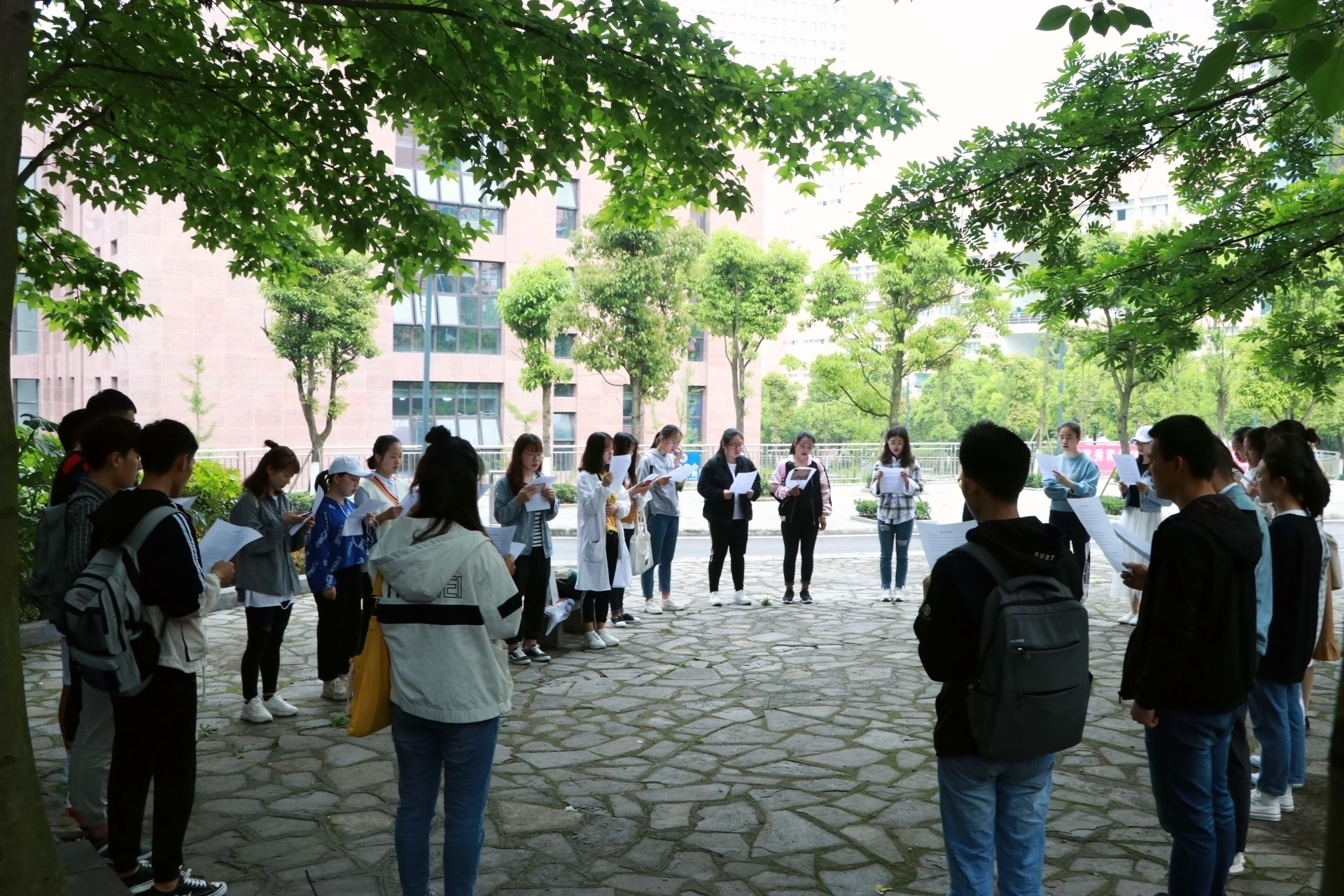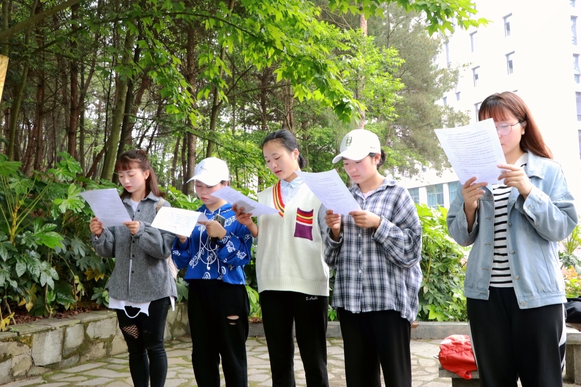 早晨,正是读书的好时机。普通话协会成员很早便到达了普通话角。他们手里拿着晨读资料,满脸都是对此次晨读的期待。徐建婵讲道:此次晨读内容丰富、形式多样,可以从各个方面提高大家的普通话水平。晨读过程中,大家先大声朗读了发音较难的单字。通过几次反复阅读提高同学们的发音准确率。在马召的领读下,同学们又继续开始词语和文章的阅读。他们不断地重复阅读文章,一遍比一遍读得更好。同学们的读书热情逐渐提高,整个普通话角都被他们的朗朗读书声所感染,路过的同学纷纷向他们投来了赞美的眼神。