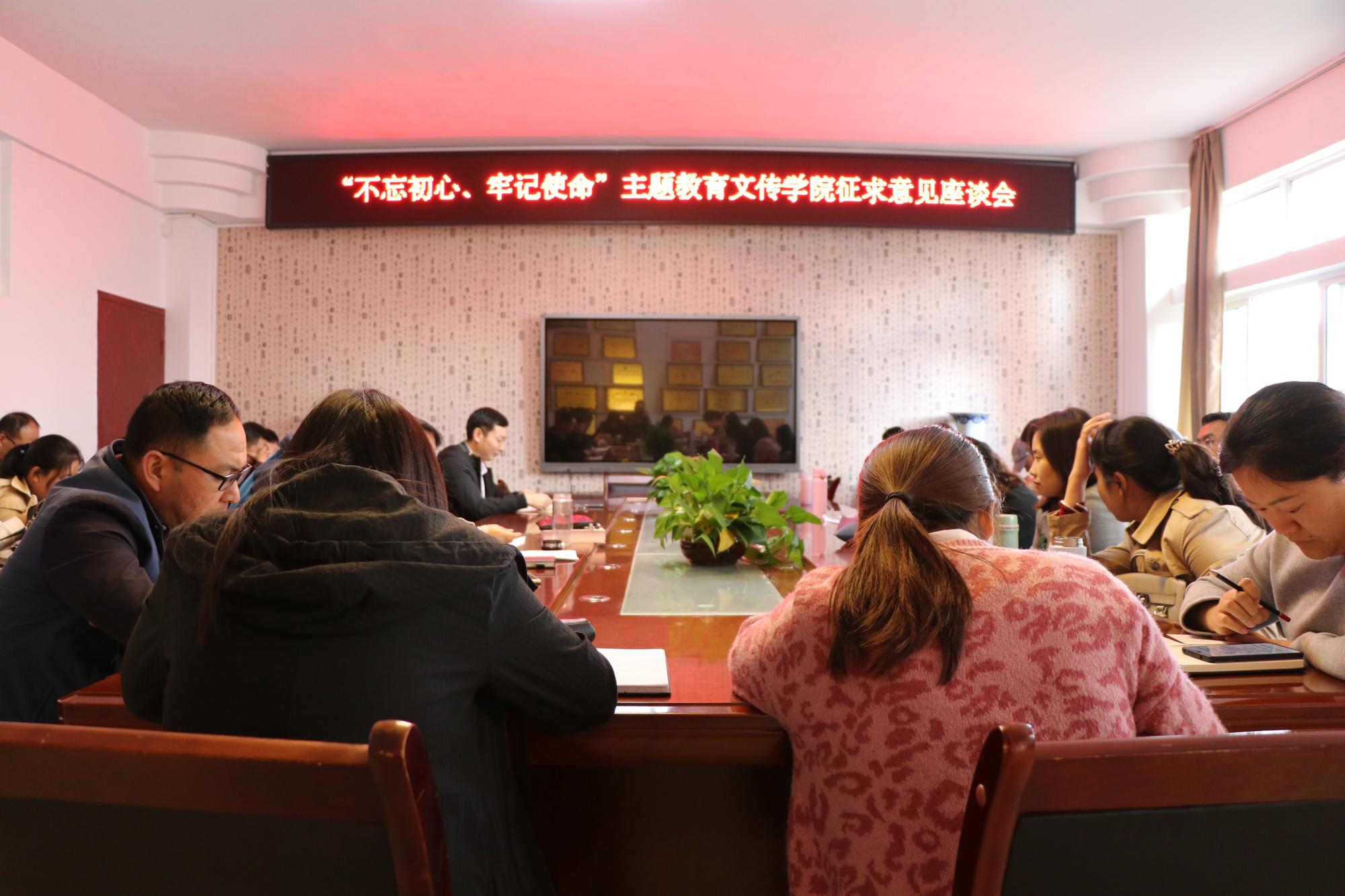 会上,与会人员围绕全院教职工在深入学习贯彻习近平新时代中国特色社会主义思想和党的十九大精神,积极开展“不忘初心、牢记使命”主题教育,全面增强“四个意识”,坚定“四个自信”,做到“两个维护”等六个方面,结合公司工作实际,就近期和远期的各项工作任务和目标,展开了积极的讨论,建言献策,提出意见建议。