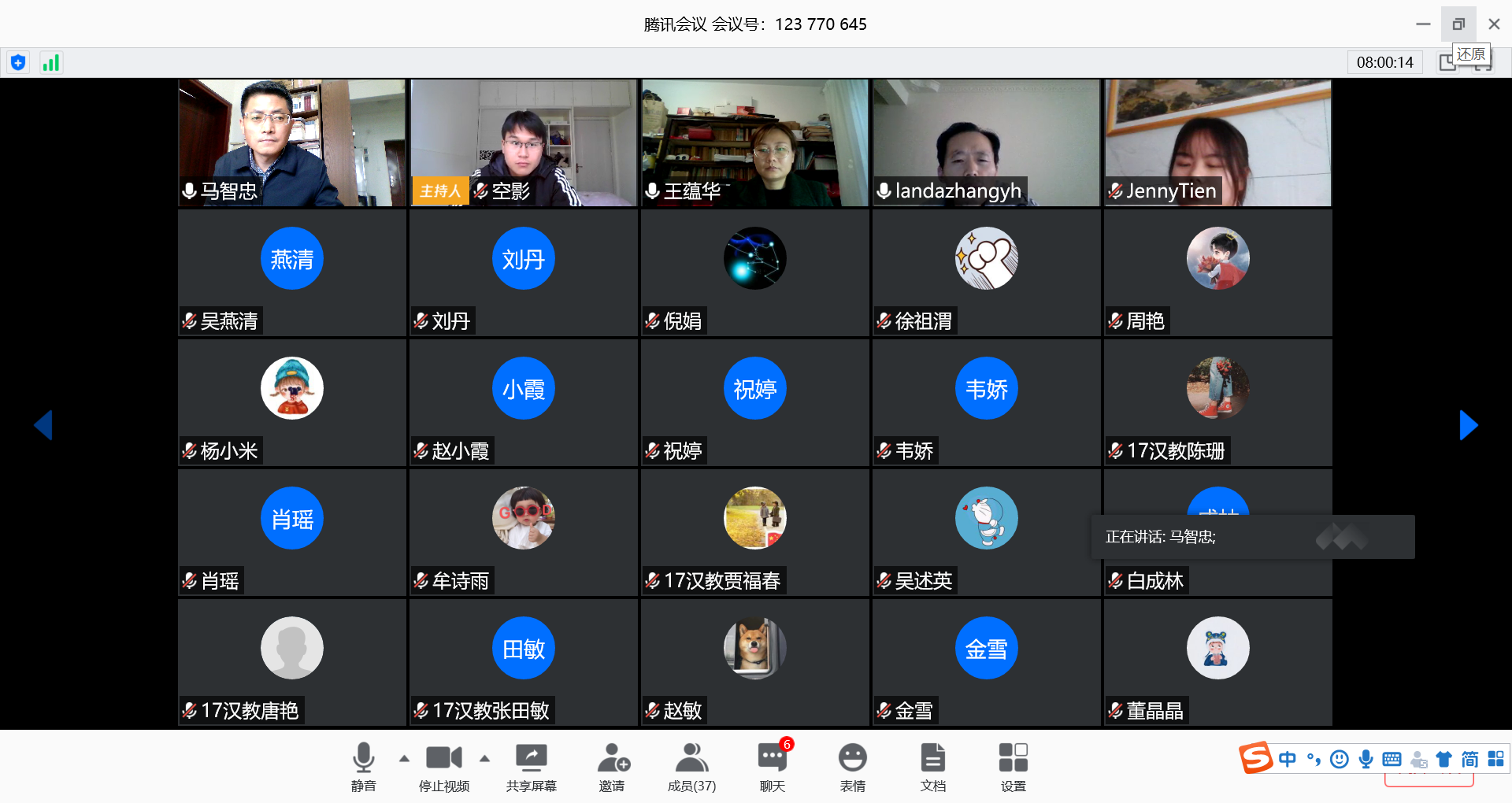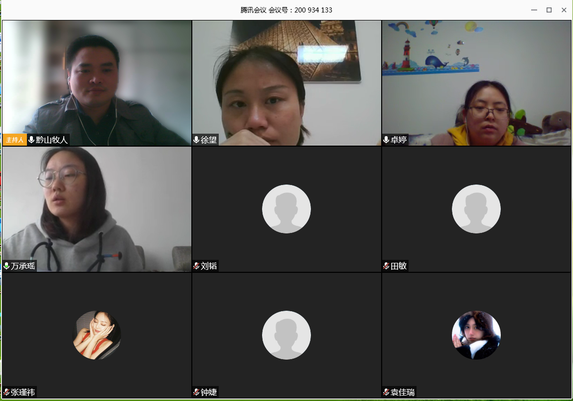 答辩还没有正式开始,答辩老师和将要答辩的同学均已到位,线上会议井然有序。答辩老师们趁着答辩会议还没有正式开始安排了相关事宜,要求答辩老师、答辩秘书以及答辩同学在答辩时必须开启视频。同时组织了大三员工参与了本次线上答辩的旁听,但不能影响学姐学长们答辩。也鼓励员工积极应对,坦然面对老员工活的最后一次考核。