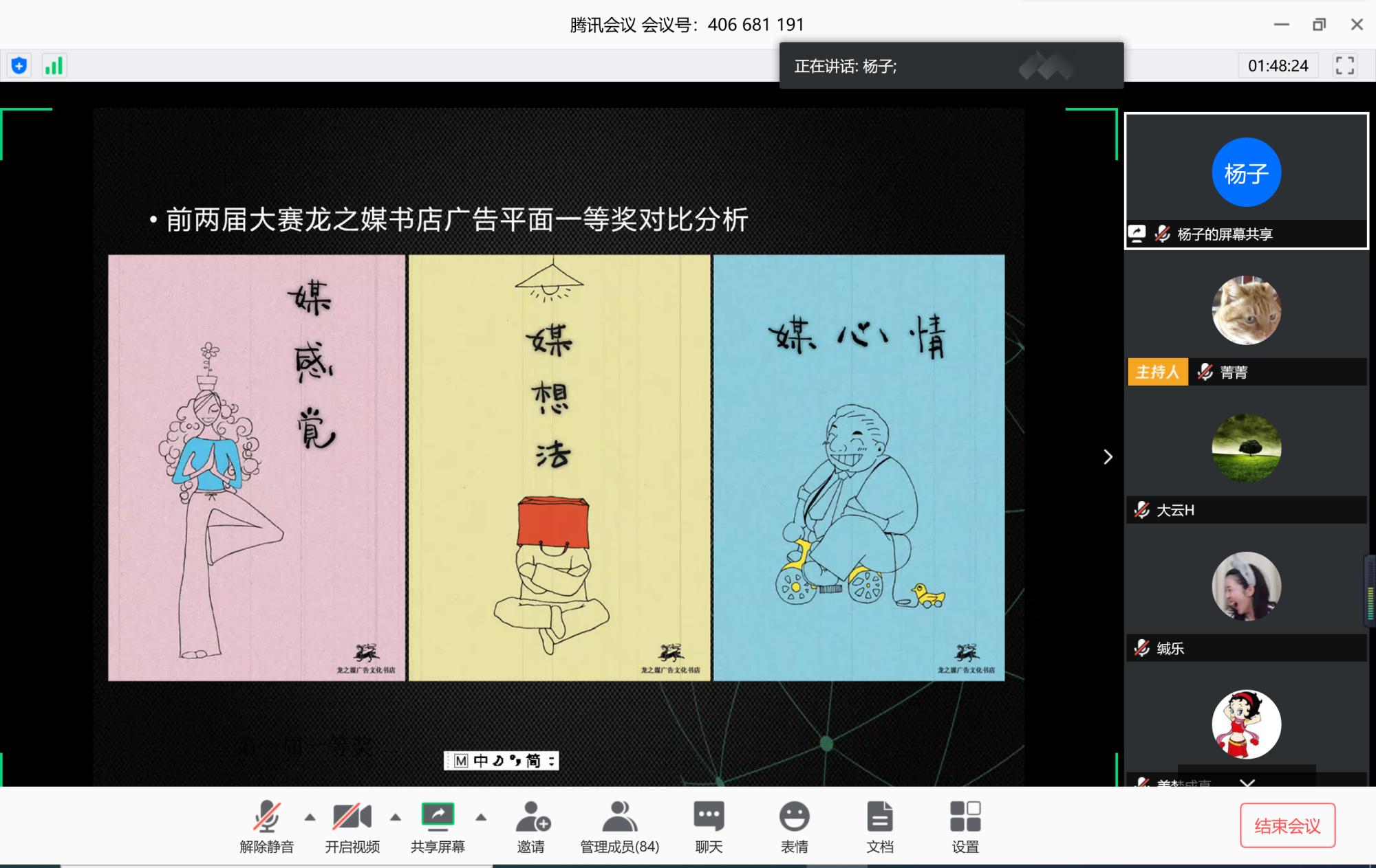 会上杨效宏老师对大广赛进行了一个全方位的揭秘,从参赛方式,评审方式和创意执行等方面,对大广赛的全部流程进行了一个全面的梳理,尤其是提供了较多具有代表性的实际案例的分享,强调作品应具有的冲击力、创造性、以及接地气。从评委的角度进行了专业、深度的分析参赛作品及获奖作品。
