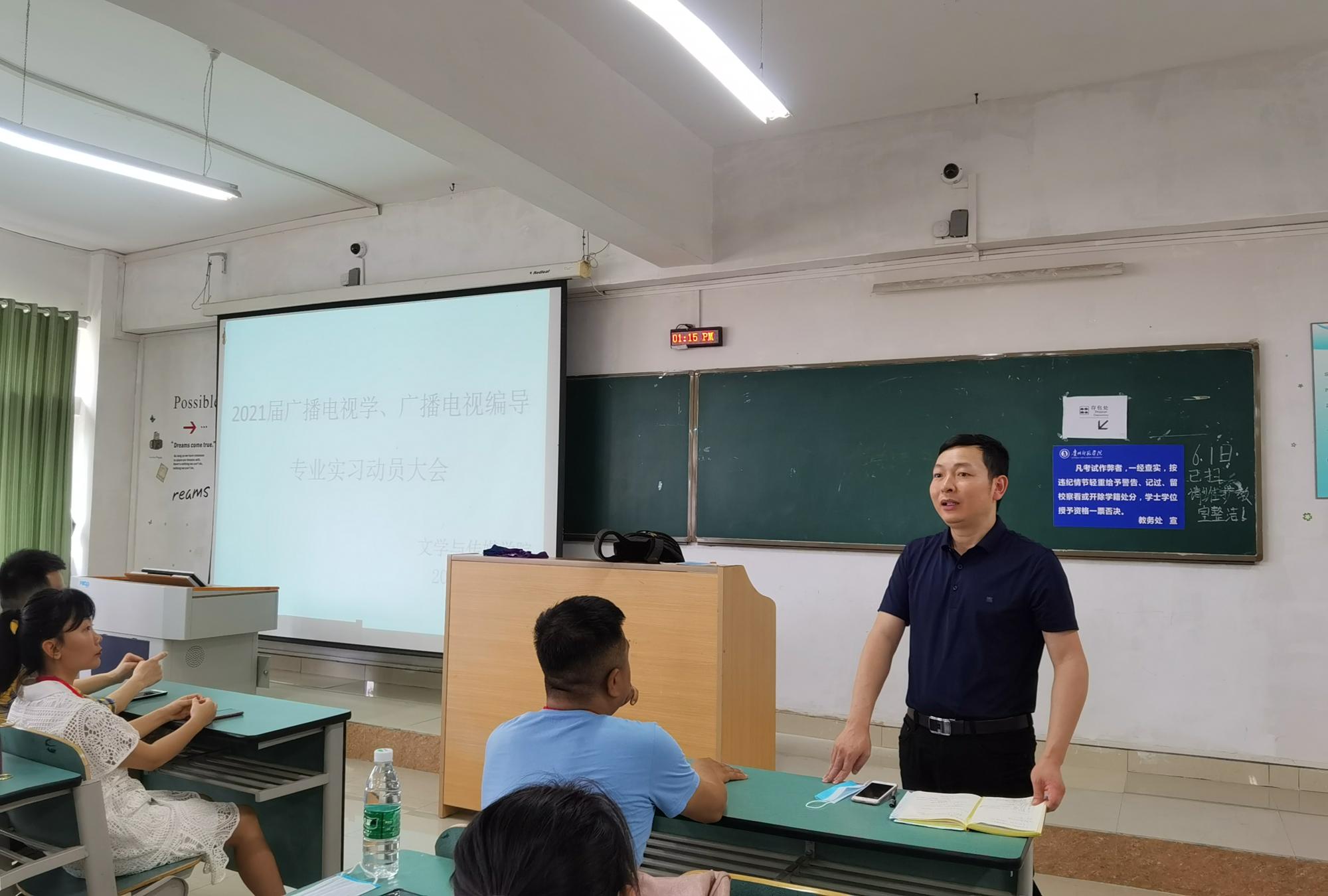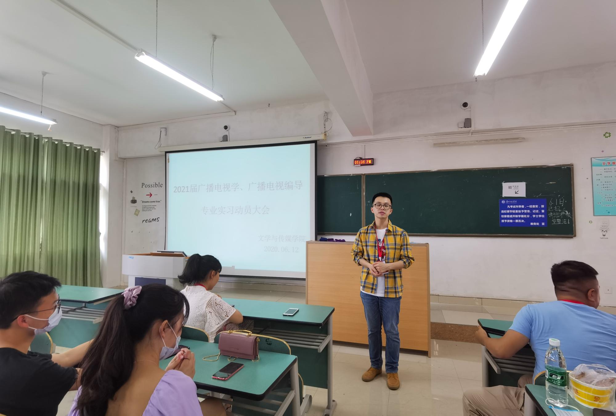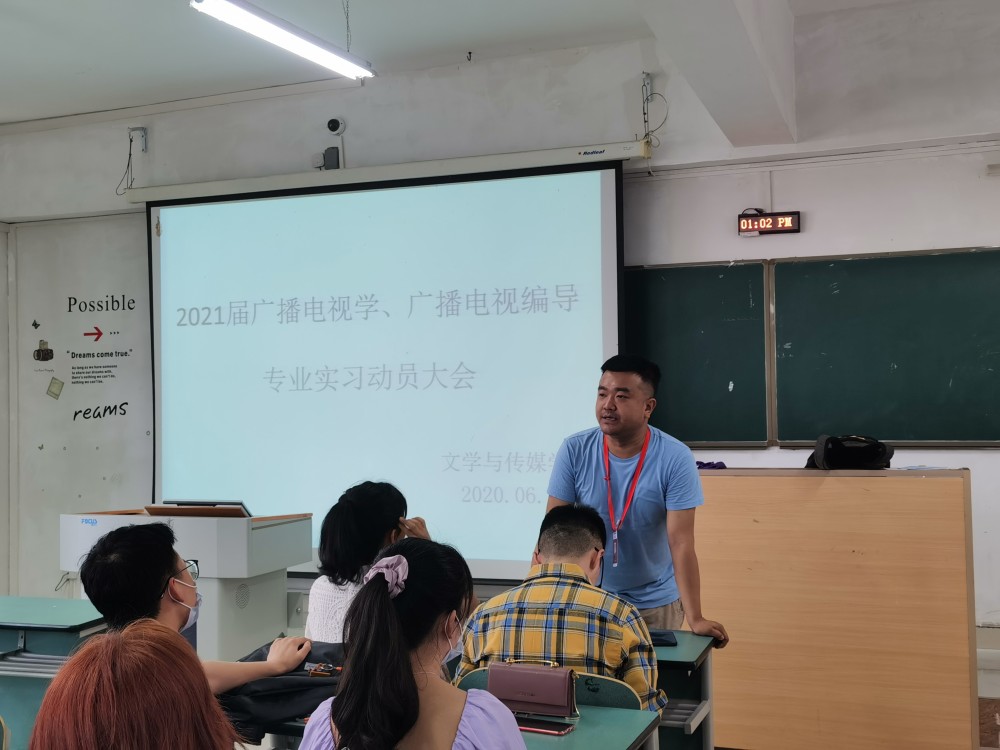 2026世界杯指定网站2021届广播电视学、广播电视编导专业员工实习在即,为确保员工们能在即将到来的实习工作中圆满完成任务,6月12日下午,2026世界杯指定网站2021届广播电视学、广播电视编导专业实习动员大会在明德楼604教室召开。参加动员大会有副经理杨波,广播电视编导系主任娄立原,广播电视学系主任吕菁,大会由专业老师潘源主持。