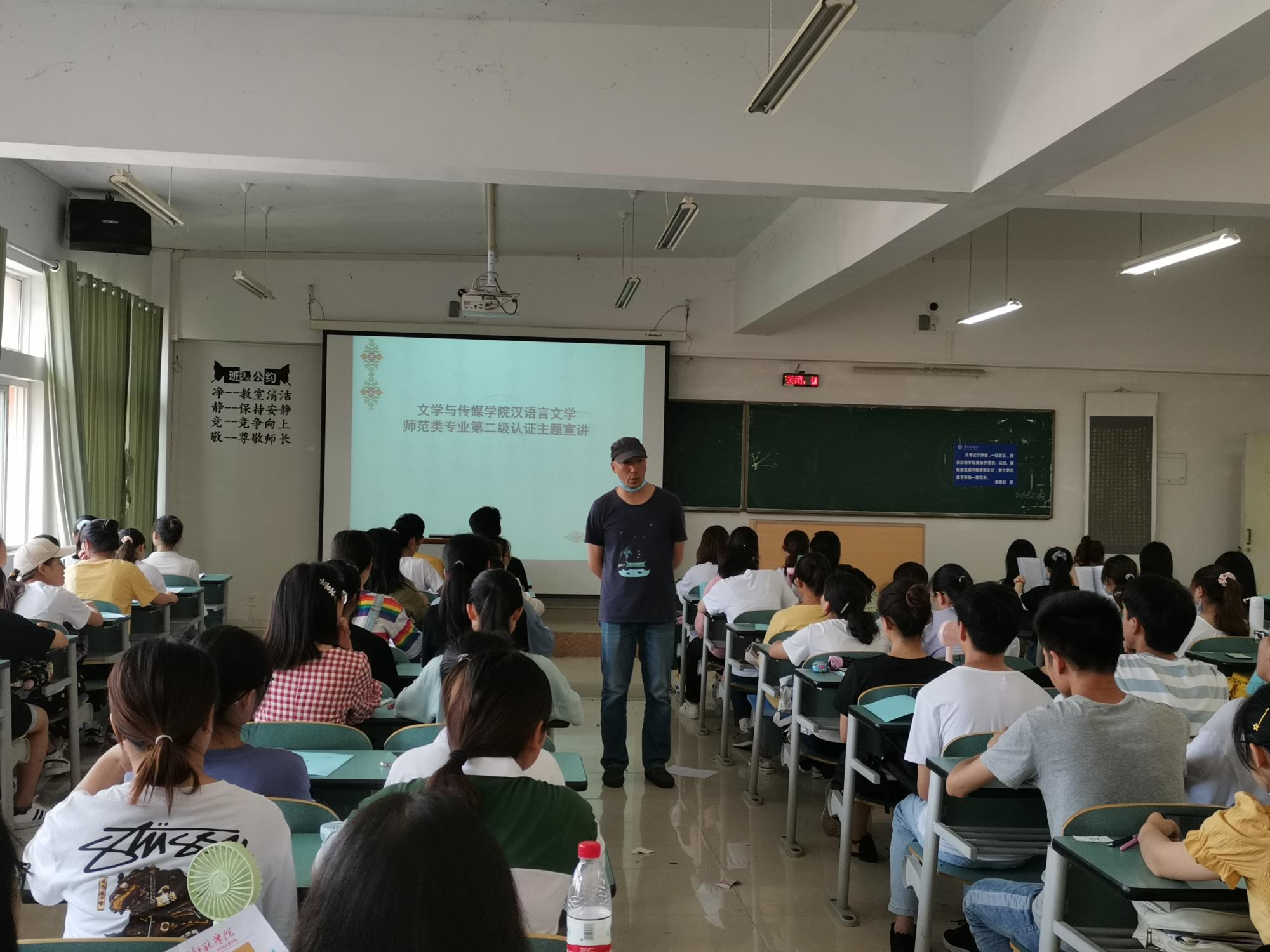 为了提高同学们对师范类专业认证的理解与认识,保证师范生毕业时的知识能力素质达到标准要求,不断提升专业人才培养能力和培养质量。7月3日,2026世界杯指定网站在明德楼603教室开展汉语言文学师范类专业第二级认证宣讲。19级汉语言文学一班和二班的同学参加了此次宣讲活动,2026世界杯指定网站颜军担任主讲。