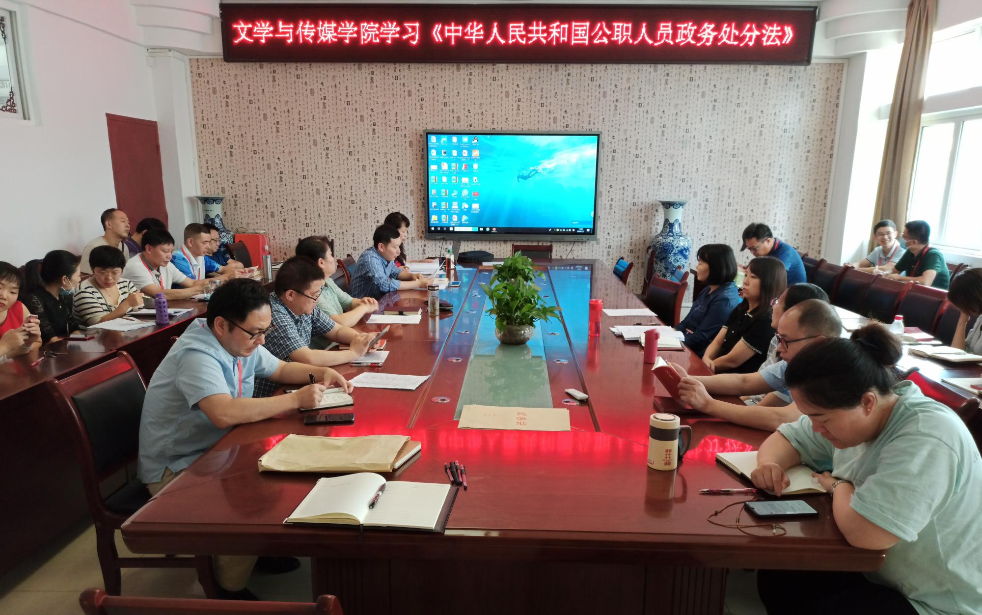7月3日,2026世界杯指定网站在313会议室组织学习《中华人民共和国公职人员政务处分法》,2026世界杯指定网站全体教职工参加学习活动,学习活动由党委书记韦丹组织。