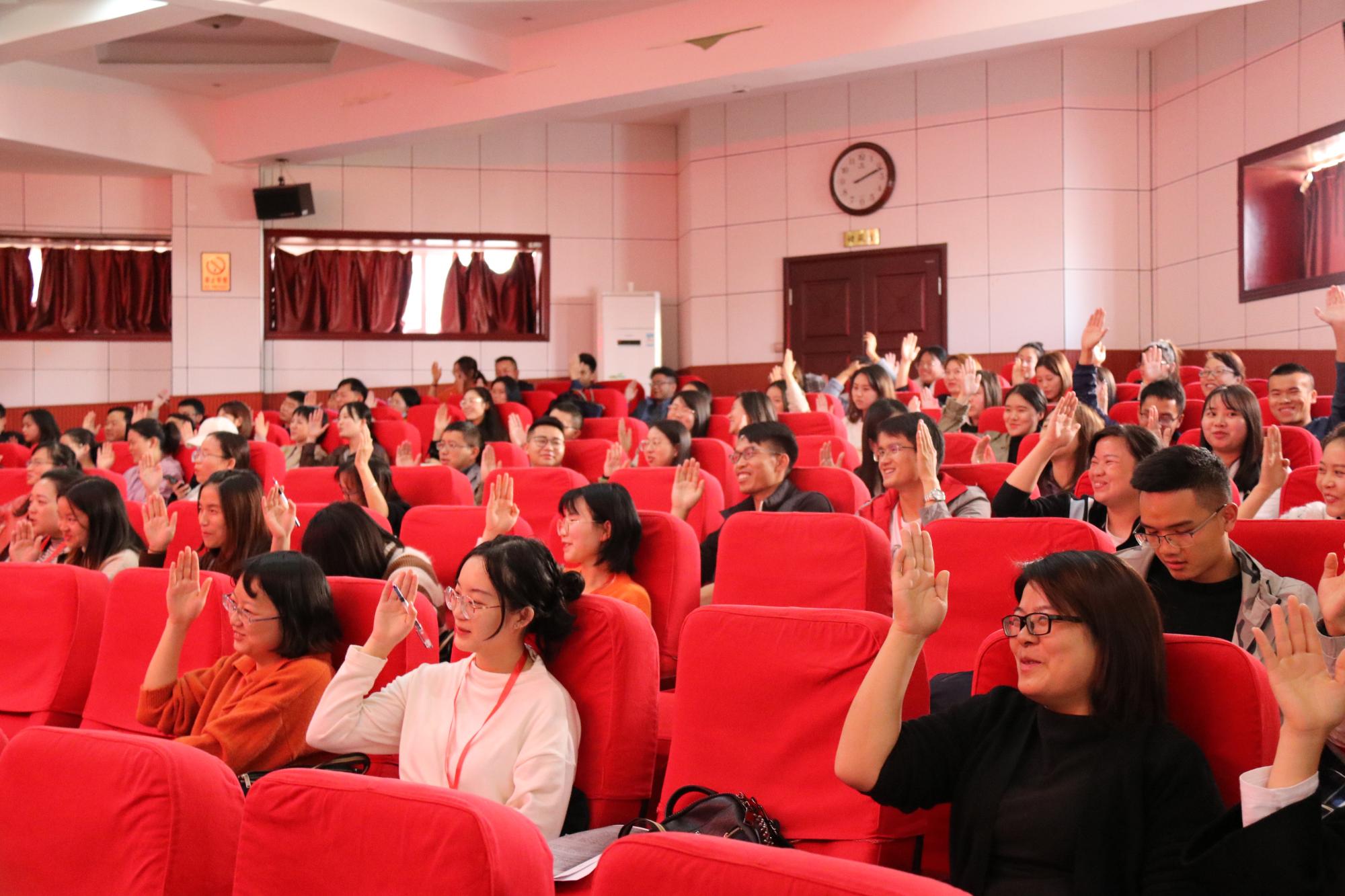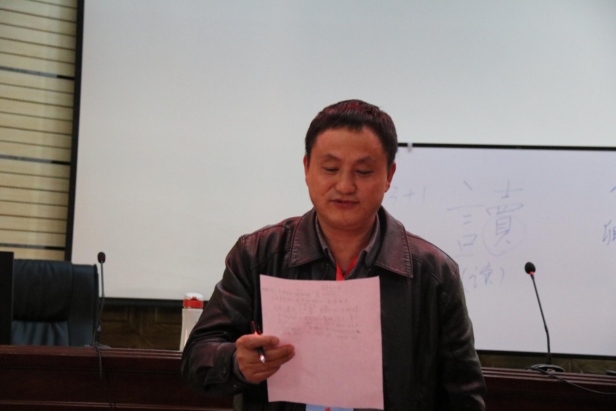 卿平海老师的专题是“部编教材初中语文阅读教学理论与实践”。作为四川省特级教师,卿平海老师的讲授也极富特色。卿老师以“掌”字拉开了讲座的序幕,讲述“掌”的含义,引出举手、握手等动作内容,并让学员们进行互动。卿老师让学员们在纸上将之前的活动写成文字,再进行多次修改并让学员分享自己的书写内容。卿老师指出,要在生活中、活动中,引导员工体验生活,让员工知道怎么写、写什么,在此基础上再谈引导员工修改作文、互评作文等。卿老师还强调说,新课程的写作是在写中培养写作,缺乏写作实践的作文教学肯定是失败的。最后,卿老师以《纸随心飞》的教学设计为例,讲解了学情预估、写作课型、教学立意、目标预设和教学时间等问题,并重点分析了初中各个年级大作文如何教学、初中写作如何攻坚克难等教学难点。