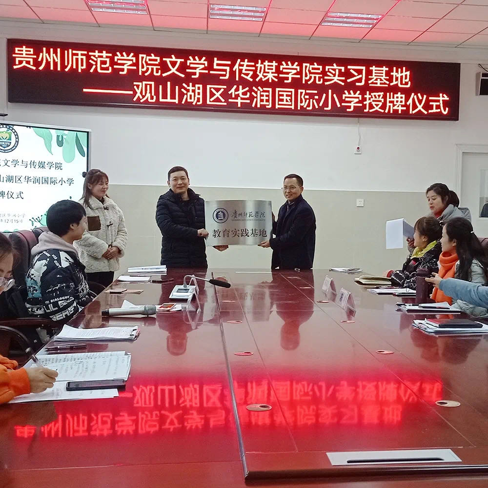 本网讯 12月15日,公司副经理杨波和李锦文老师到观山湖区华润小学听实习生汇报课并举行实习基地授牌仪式,华润小学董事长陈冲、董事长助理朱双红、四名实习生及其指导教师参加活动。
