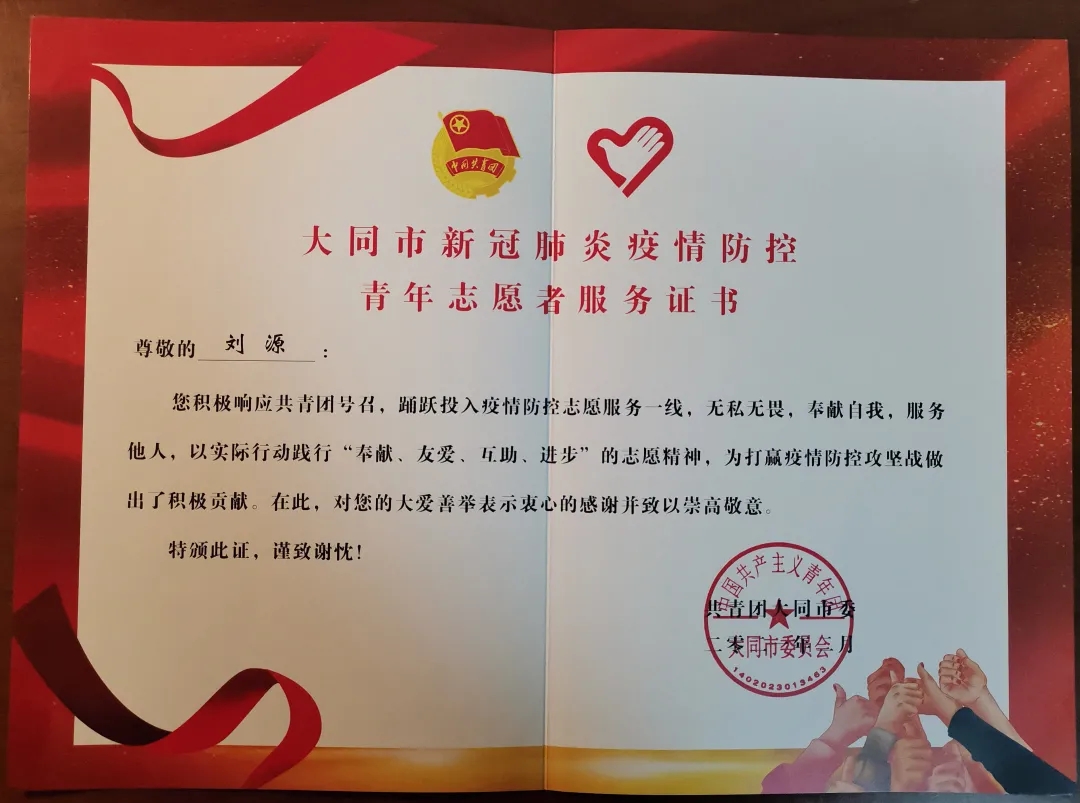 2020年1月,突如其来的疫情席卷了中国的大江南北,医护人员奔赴一线,在职警卫坚守岗位,志愿者们踊跃报名力求为社会贡献自己的一份力量。刘源,一名就读于20级广播电视学专业的员工,在春运返乡期间,成为山西省大同市疫情防控青年志愿者服务队的一名队员,加入到了此次疫情防控中去。