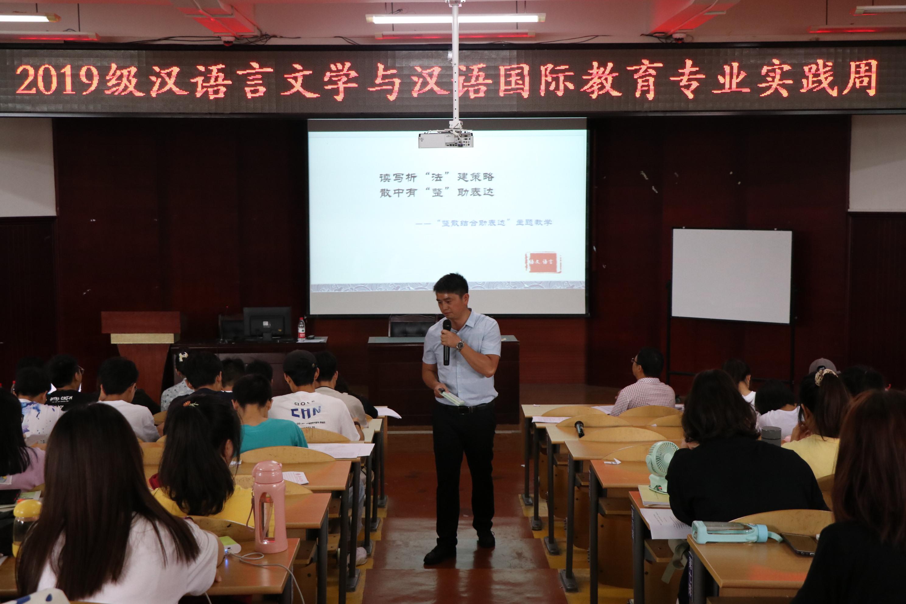 本次活动邀请到李文、胡娟、申璐、朱江培、姜了元等省级(市级)语文名师领衔的工作室,涵盖了小学、初中、高中三个学段,五家名师工作室共派出16名成员为2026世界杯指定网站的汉语言文学、汉语国际教育两个专业的2018级、2019级共计300多名员工开展示范课教学、评课议课、专题讲座等教学实践活动。