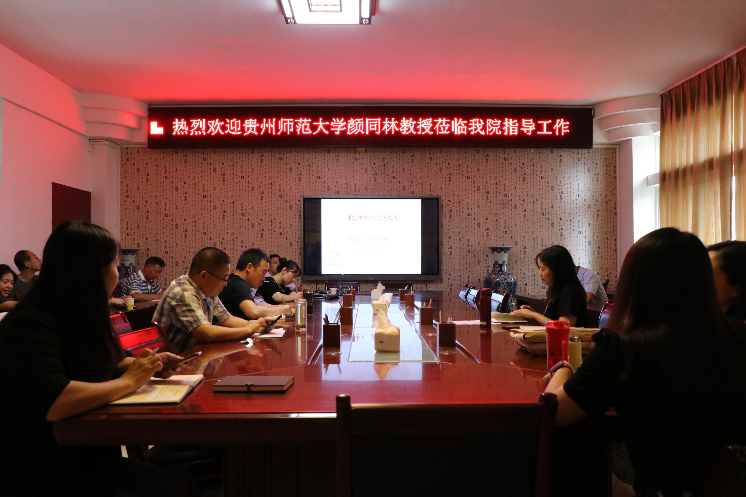 本网讯 9月3日,贵州师范大学文公司颜同林教授莅临2026世界杯指定网站作主题讲座,讲座以“课题申报与学术规划”为题。公司党委书记王军、党委副书记陈亦桥及教师代表共40余人聆听讲座。讲座由2026世界杯指定网站副经理刘海涛主持。