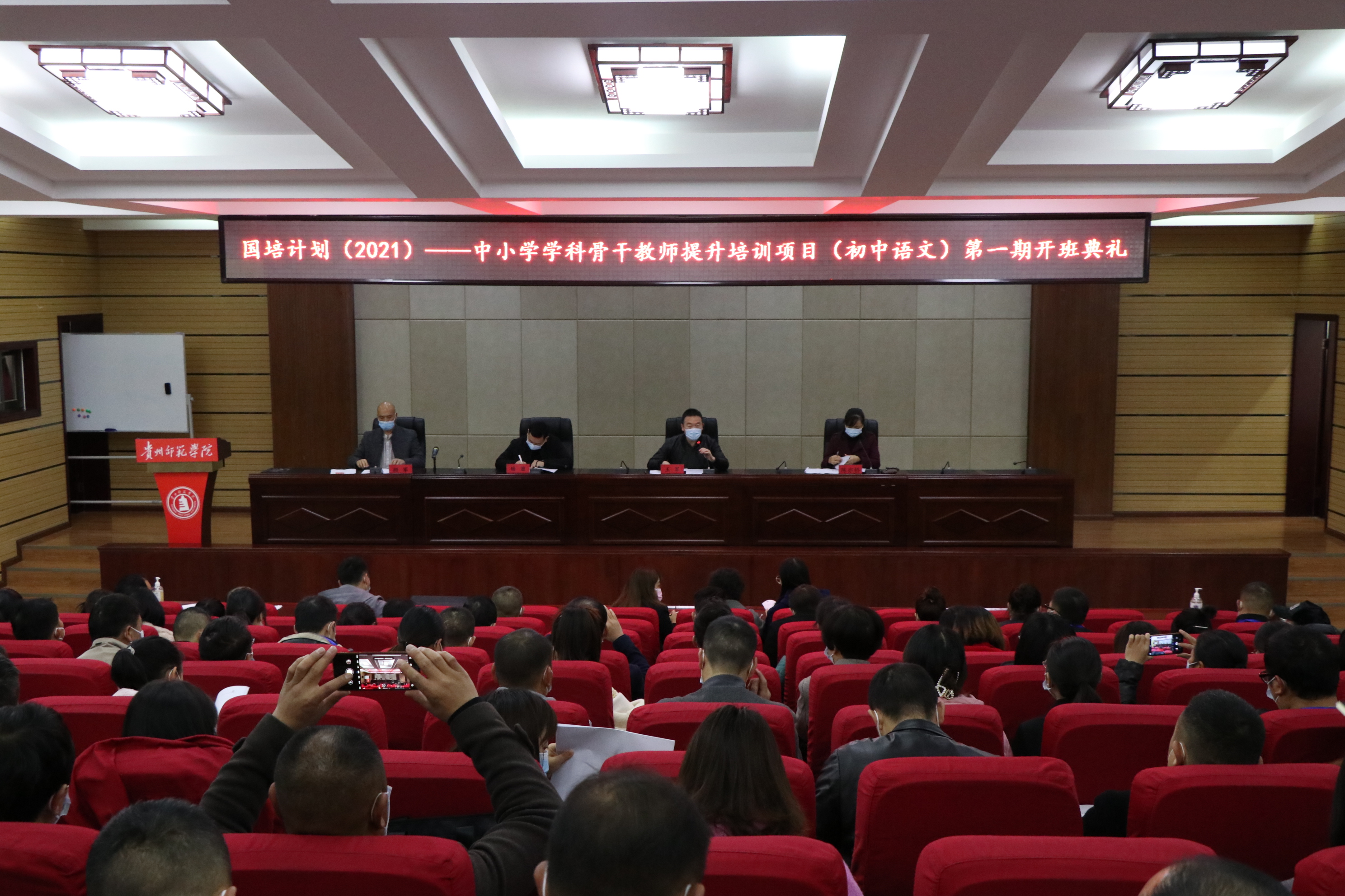 本网讯 10月21日,“国培计划(2021)”-中小学学科骨干教师提升培训项目(初中语文)集中培训第一期顺利展开。10月22日上午,该期培训开班典礼在公司文韬院二楼报告厅举行。开班典礼共有200名初中语文骨干教师参加,2026世界杯指定网站经理杨波、党委书记王军、党委副书记陈亦桥、各班班主任老师以及助理同学出席了本次开班典礼。典礼由颜军老师主持。