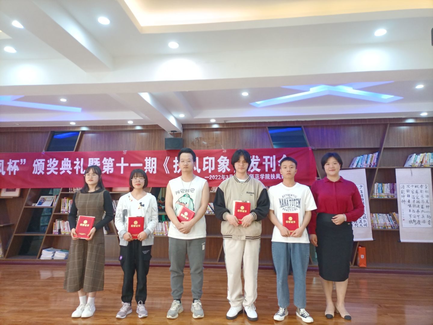 经过一番精彩的朗诵之后,蹇登绯和两位指导老师分别为一二三名获奖者颁发证书与奖品。活动接近尾声,刘雄老师在结语部分讲述了诗社的现在和他的过去,环境有所不同,时代有所不同,但相同的是大家都有一颗热爱诗文的心。