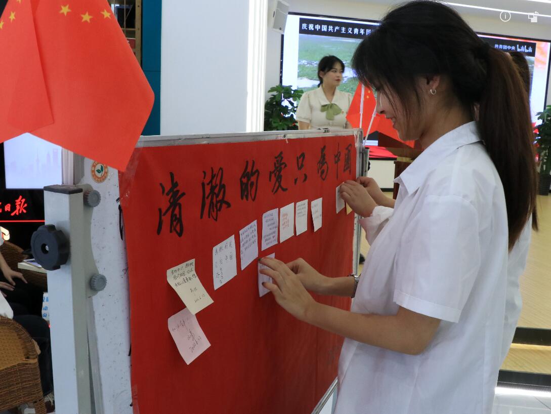 活动中,参会领导、老师和同学们共同写下自己对祖国、对青年的美好祝愿。活动在合唱歌曲《强国一代有我在》的悦耳旋律中结束,“清澈的爱,只为中国”活动虽然落下帷幕,但同学们仍会以赤子的情怀,继续坚定不移地走在热爱祖国的路上。无论在哪里,永怀一颗爱国心;无论在何时,用心谱写爱国情。