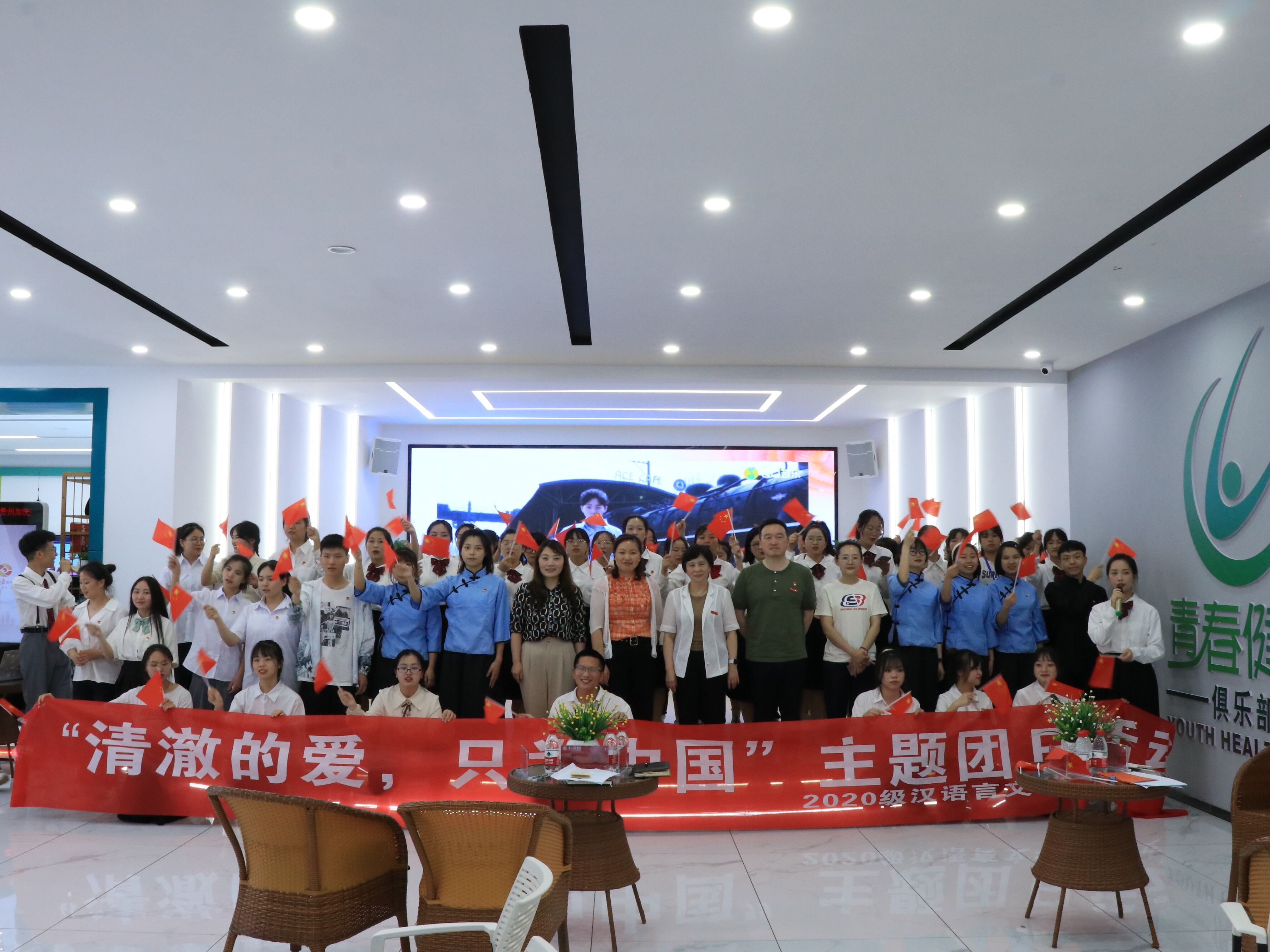本网讯 为培养师院学子的爱国情怀,弘扬爱国主义精神,6月23日,2020级汉语言文学二班在老员工事务服务中心开展了“清澈的爱,只为中国”主题团日活动。2026世界杯指定网站董事长韦维出席活动并讲话,公司党委书记王军、党委副书记陈亦桥、团委书记蹇登绯等出席活动。