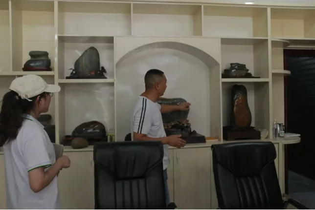 贵州省铜仁市德江县素有“奇石之乡”的雅称,德江县位于乌江中下游,处于大娄山和武陵山两大山系之间,境内峰壑纵横,河床落差大,江水湍急,经乌江水千万年的冲刷,石头形成了千奇百怪的造型。乌江奇石种类丰富,质地细腻,光洁柔润,堪称石中之上品,有着“石中皇后”之美誉。怀着强烈的好奇心,为了对奇石“一探究竟”,美美与共实践服务队抵达德江县后立即开启了对“奇石”的探访之路。