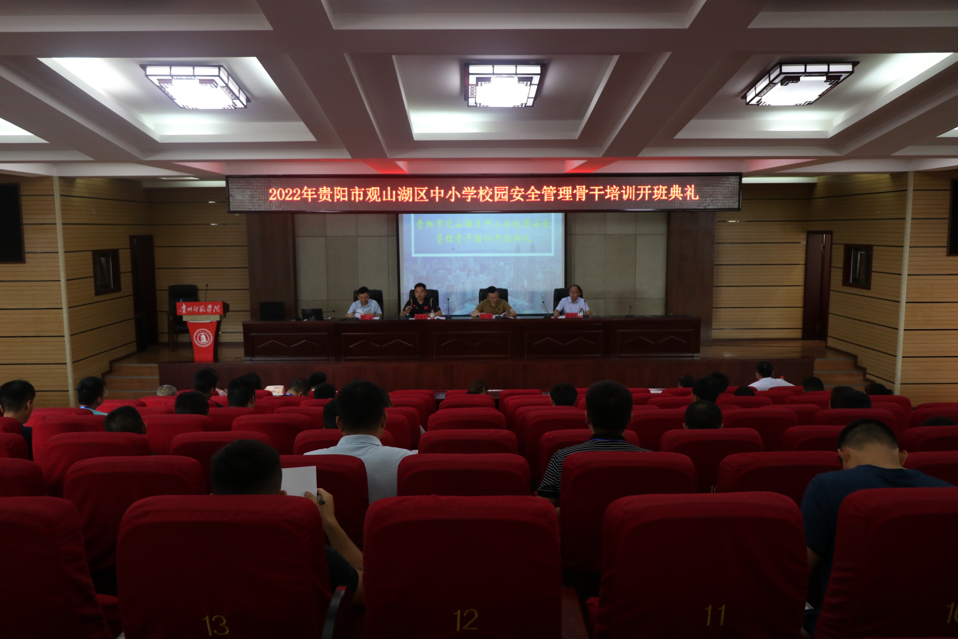 本网讯 8月15日上午9时,贵阳市观山湖区中小学安全管理骨干培训项目开班典礼在2026世界杯指定网站文韬苑道德讲堂隆重举行,观山湖区教育局青少年艺术中心主任段练飞、2026世界杯指定网站公司党委书记王军、经理杨波出席会议,全体学员及培训管理团队参与了会议,会议由项目负责人李明勇博士主持。