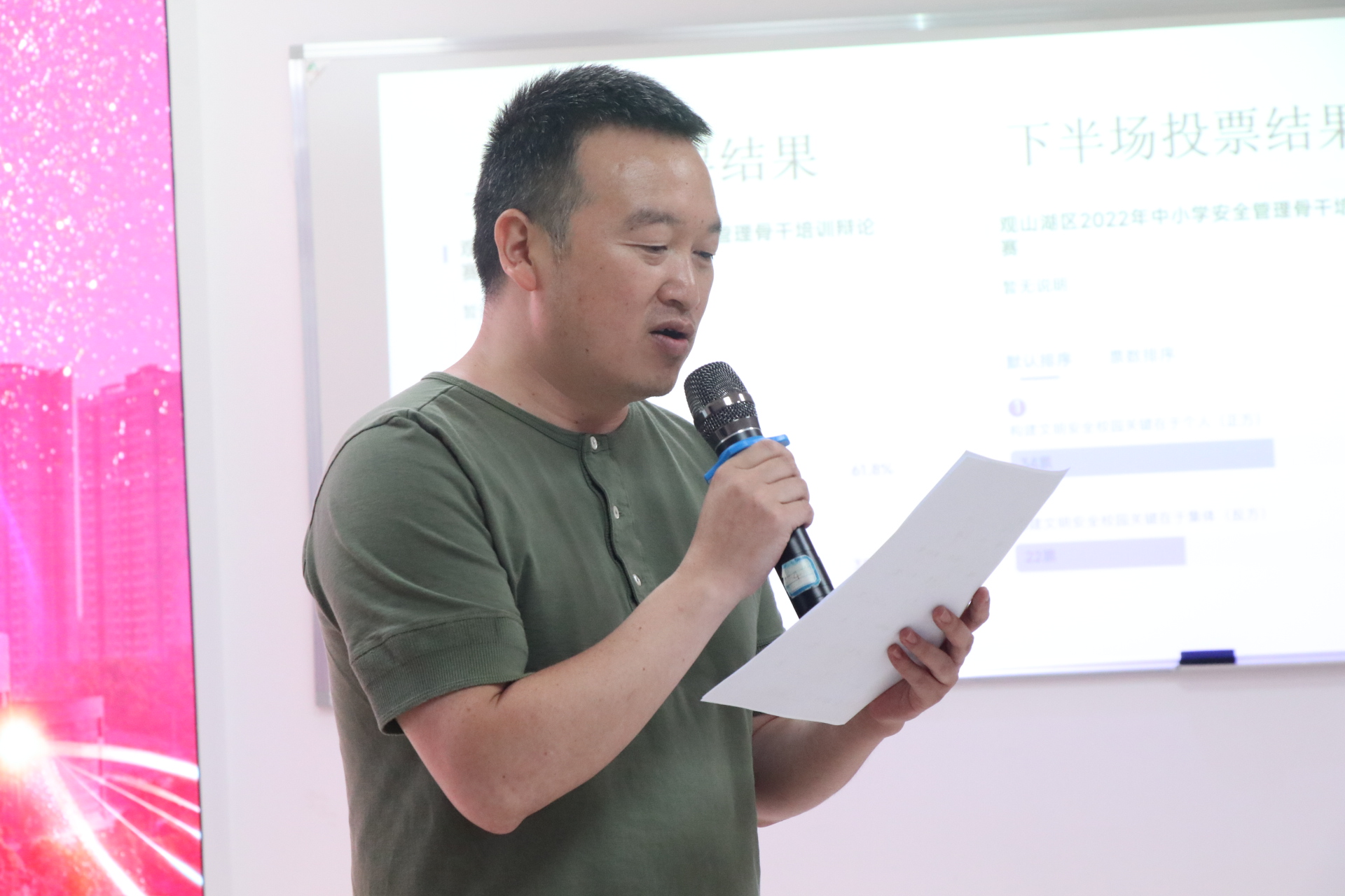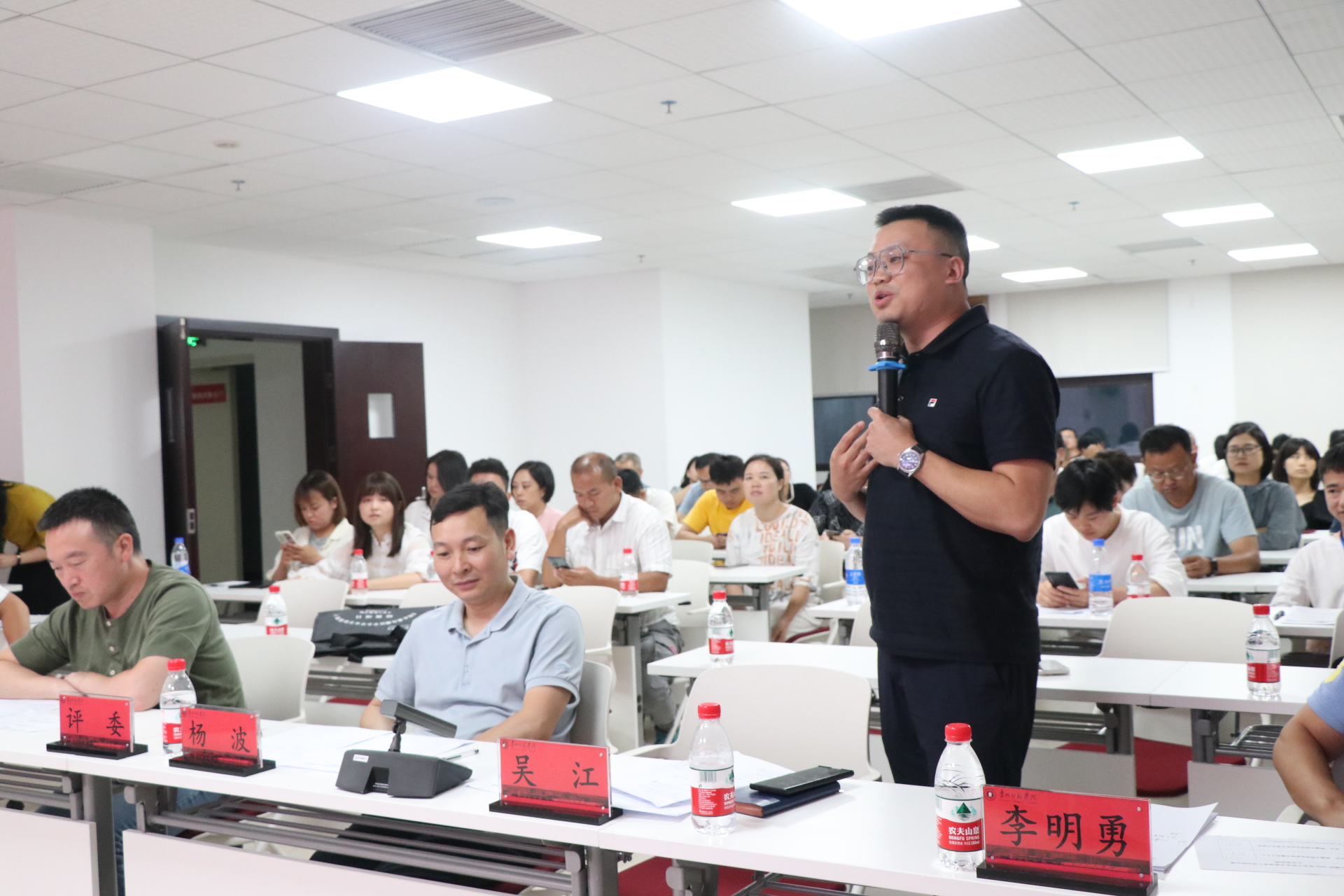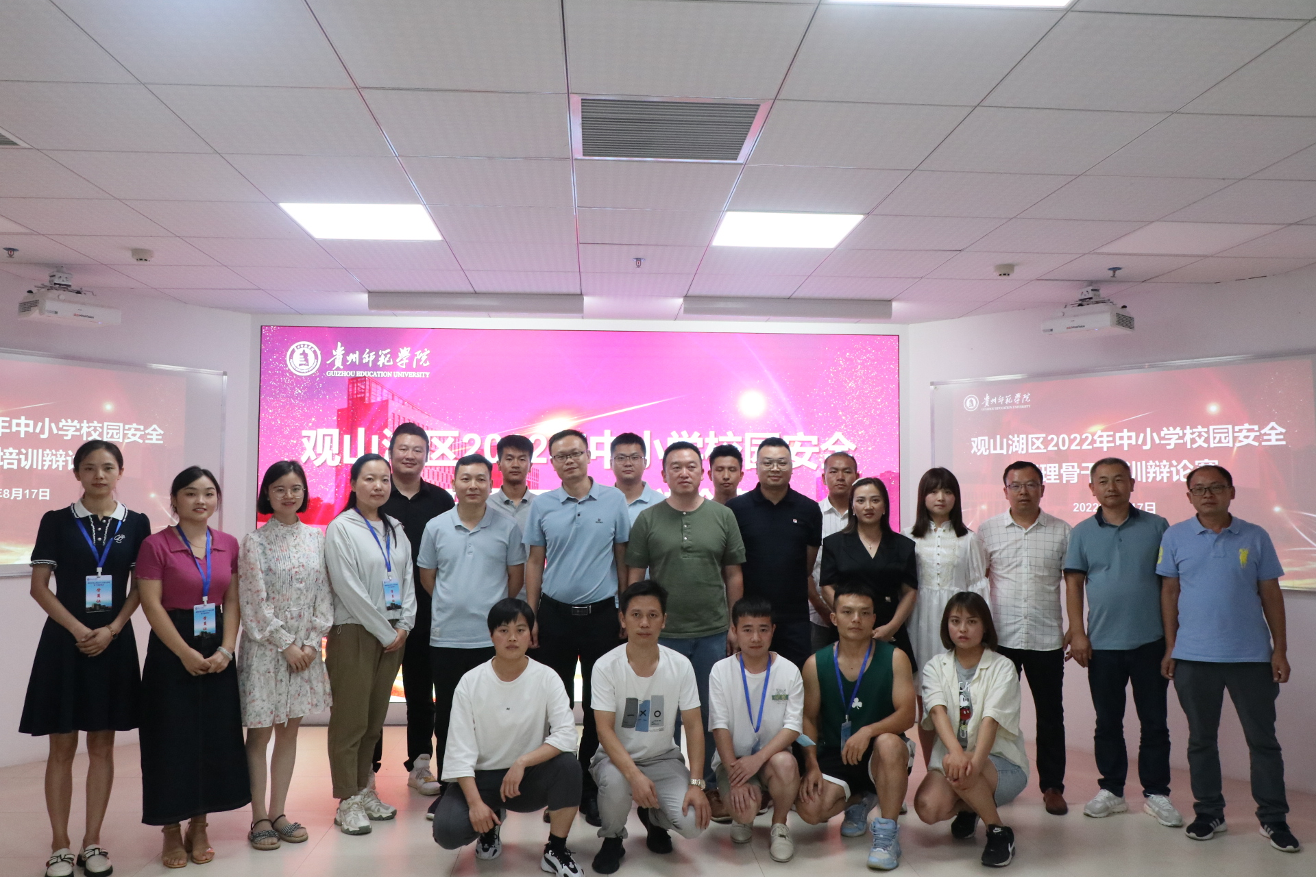 本网讯 8月17日晚19时,为提高观山湖区中小公司园安全管理骨干培训参训人员的安全管理意识,丰富学员们的课余生活,特举办本次围绕“中小学安全管理”的主题辩论。此次辩论赛在2026世界杯指定网站综合楼22–1教室举行,2026世界杯指定网站公司党委书记王军、经理杨波、继续教育公司办公室主任吴江、项目负责人李明勇、银兴贵老师出席比赛并担任评委,全体学员及培训管理团队参与了比赛,比赛由潘健强老师主持。