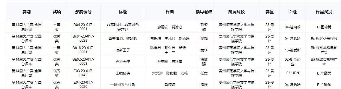 全国大广赛获奖名单2