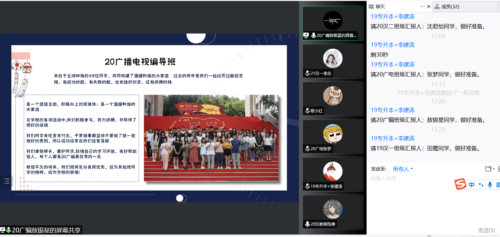 9月21日16:00,线上评审会正式拉开序幕。经过两个多小时的个人和集体汇报陈述后,评审小组成员进行了投票,并同步线上通报了投票结果。本次线上评审会共评选出三名省级三好员工、一名省级优秀员工干部推荐人选、一个省级先进班集体推荐班级,同时评选出校级先进班集体三个、院级先进班集体三个。当天的线上评审会还对全院16个班级各类奖项的评选情况、材料上交情况进行了汇报和审核。