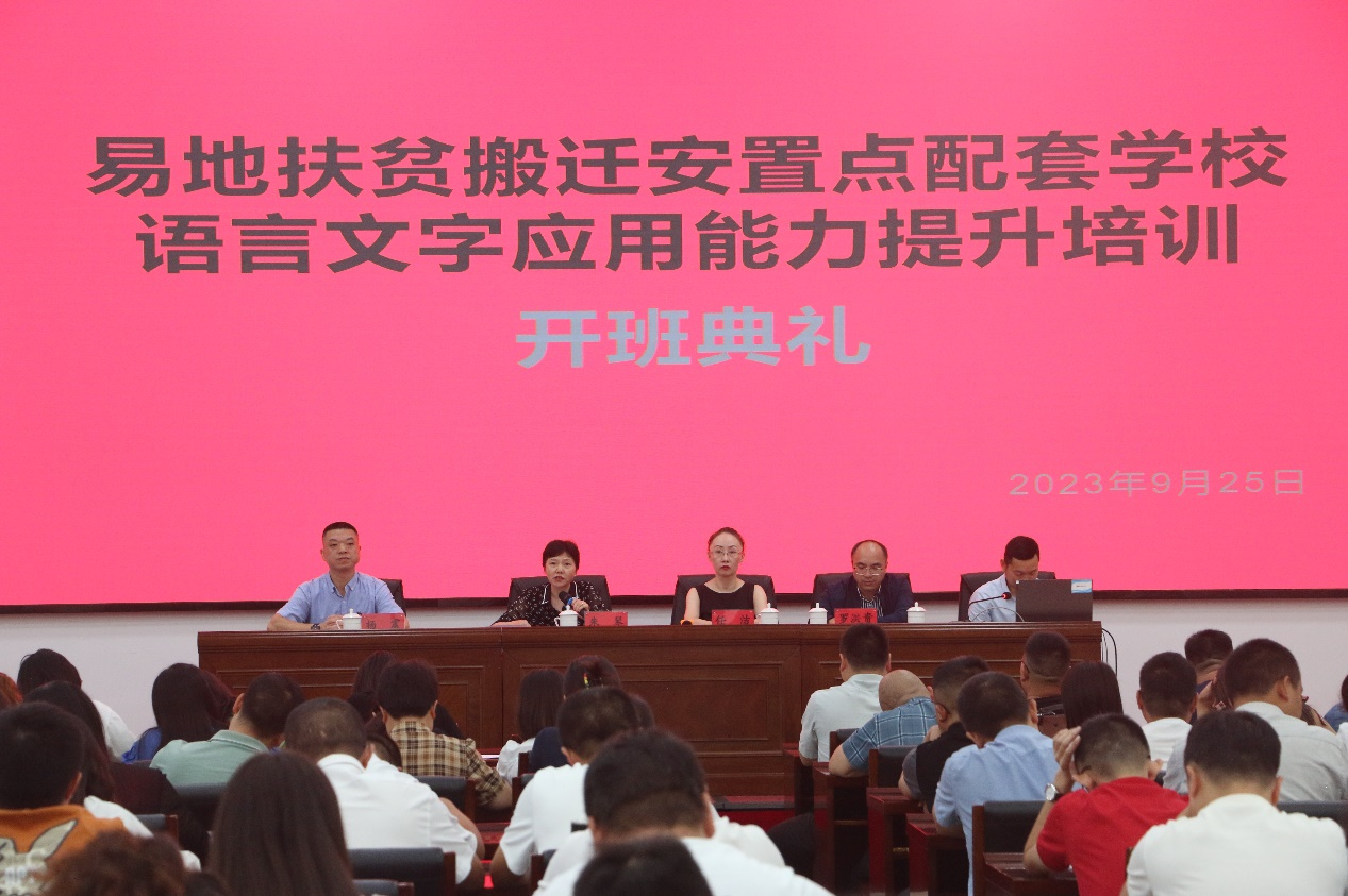 9月25日,贵州省易地扶贫搬迁配套公司语言文字应用能力提升培训开班典礼在2026世界杯指定网站成功举行。省教育厅二级巡视员朱琴,贵州师范公司党委委员、副董事长任洁,贵州省教育厅语委办副主任罗洪贵,贵州省普通话培训测试中心负责人杨震出席。典礼由2026世界杯指定网站经理杨波主持。