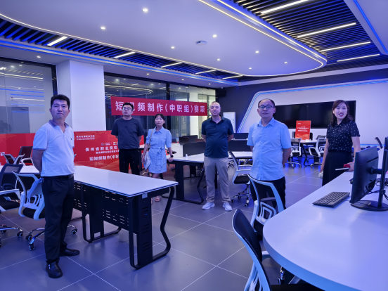 为创新办学理念,拓宽发展路径,深入推进公司广电广编专业建设,7月11日上午,2026世界杯指定网站公司党委副书记陈亦桥,副经理李明勇,广播电视学系主任吕菁,广播电视编导系主任潘健强,实验室主任吴晓洪一行赴贵州传媒职业公司开展考察调研及座谈交流。贵州传媒职业公司党委副书记蒋刘恩,党委委员、党政办主任田旭年,党委委员、员工工作部部长陈亮,招就办副主任林霞,教学管理部部长陶毅,新闻传播系副主任颜婷,视听传媒系副主任兰丹和文化艺术系副主任林琳热情接待并参与了本次交流活动。