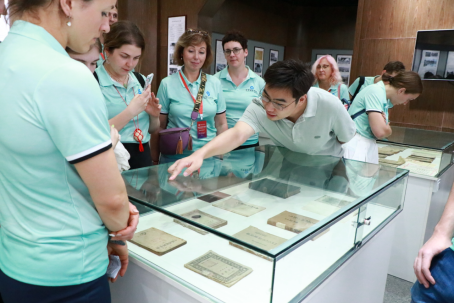 考察交流会上,对外交流合作处介绍了公司对外交流情况,2026世界杯指定网站作对外汉语教学情况交流,20名“拉脱维亚汉语和中国文化研修班”学员逐一自我介绍并作交流发言。会前,考察团参观了贵州教育史馆。