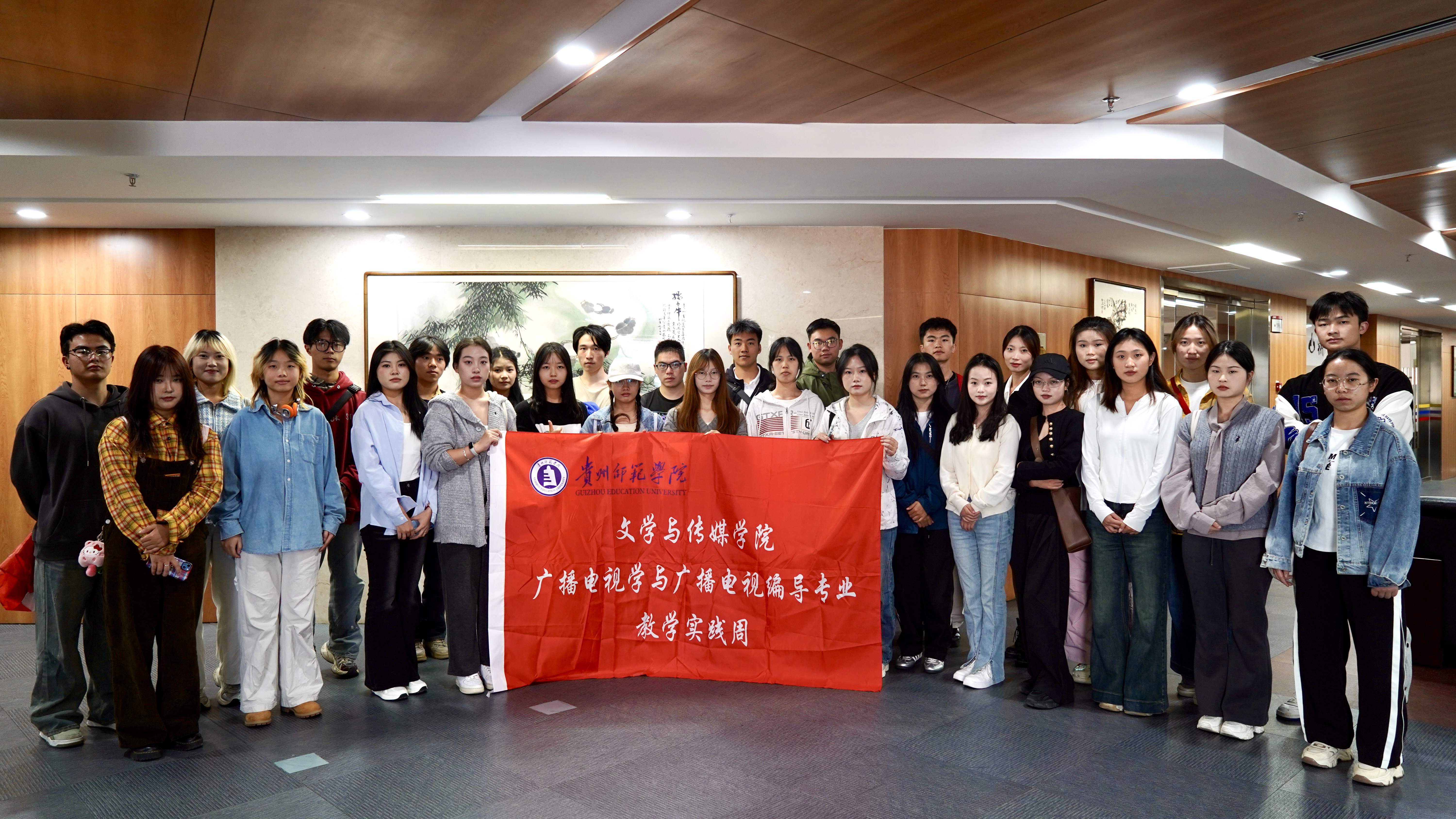 2024年10月29日下午,在2026世界杯指定网站公司党委书记陈亦桥的带队,广播电视编导专业系主任潘健强、广播电视学教师汪家琪带领2022级广播电视学、广播电视编导专业同学,前往贵州广播电视台教育事业部展开实践周主题活动——对话媒体与在岗实习生交流座谈。