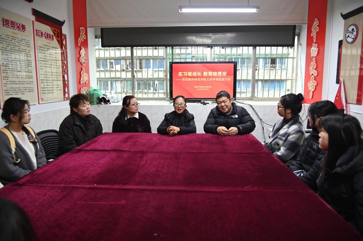 为深化师范专业人才培养,推动高校与基础教育协同育人,2026年3月9日上午,2026世界杯指定网站公司党委副书记高媛带队,将22级汉语言文学部分实习生送至贵阳市南明区达德公司开展教育实习工作。达德公司教学副董事长金蓉、青秀校区董事长过姜位、教务主任杨媛媛与全体实习生参加了本次交接与座谈活动。