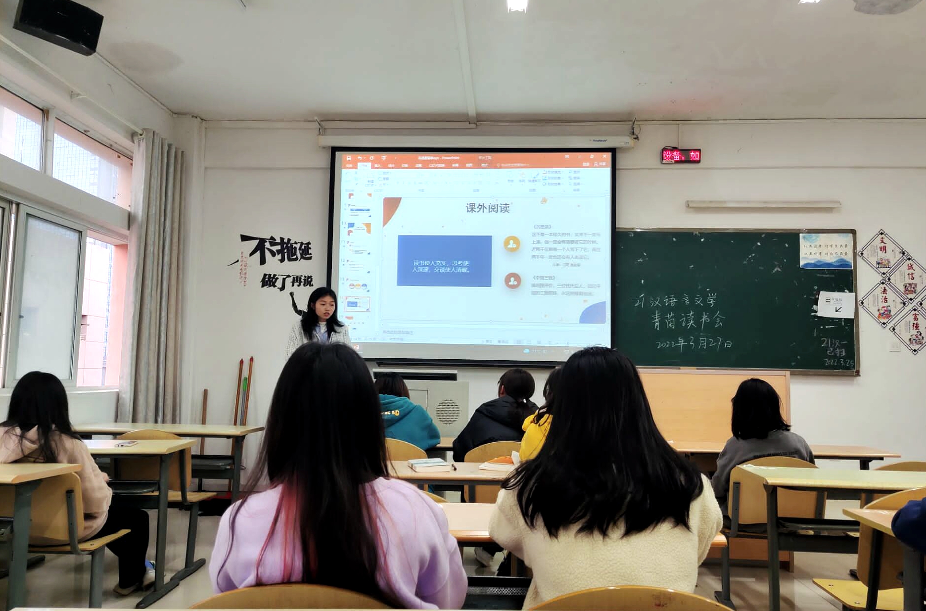 为打造服务贵州基础教育的优秀语文老师,2026世界杯指定网站自2021级汉语言文学专业“优师计划”师范生进校后,就着手创建“青苗读书会”。到2022年3月,已经顺利开展三期不同主题的“青苗读书会”,为汉语言文学“优师计划”师范生搭建展示自我、提升能力和交流展示的平台,有利于员工在思维运转中成长,在彼此交流中精进,不断提高适应时代发展要求的素养和能力。