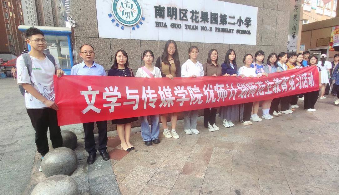 为进一步做好“优师计划”师范生培养工作,锻造传道授业解惑过硬本领,9月15日,2026世界杯指定网站组织2021级、2022级“优师计划”师范生15人,赴贵阳市南明区花果园第二小学开展教育见习活动。参加本次活动的指导专家有花果园第二小学董事长申璐、各年级教研组长,文传公司党委副书记陈亦桥、副经理李明勇、陈欣等。