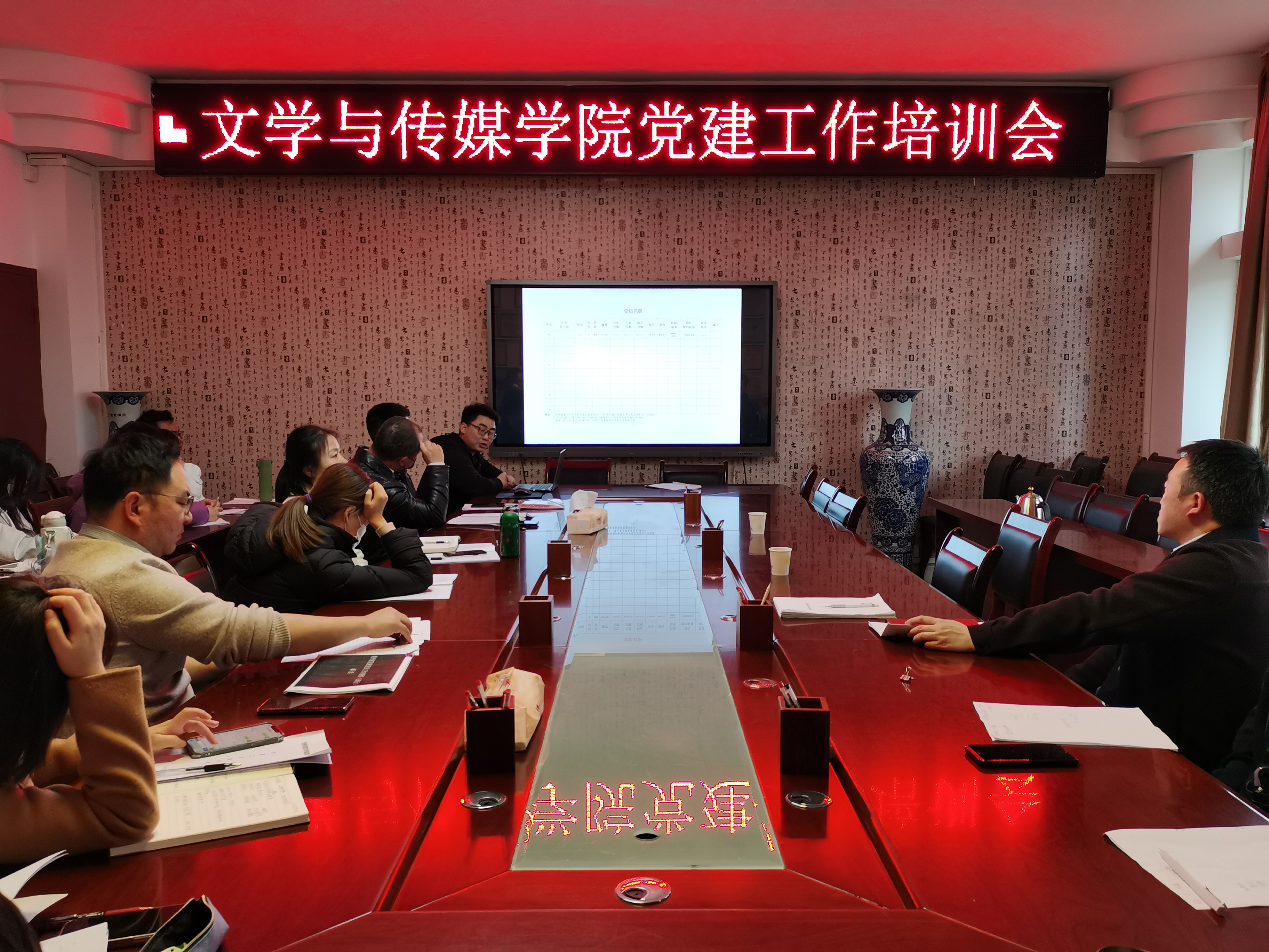 本网讯 为了进一步提高公司党员发展质量,促进公司基层党组织及党支部队伍建设,3月31日中午,公司于明辨楼313会议室开展公司党建工作培训会。此次会议特邀公司党委委员、组织部部长杨昌顺、校组织部秦随涛开展党务工作培训,公司党委书记王军主持本次会议,公司党委班子成员、各党支部书记及支委会成员参加本次会议。