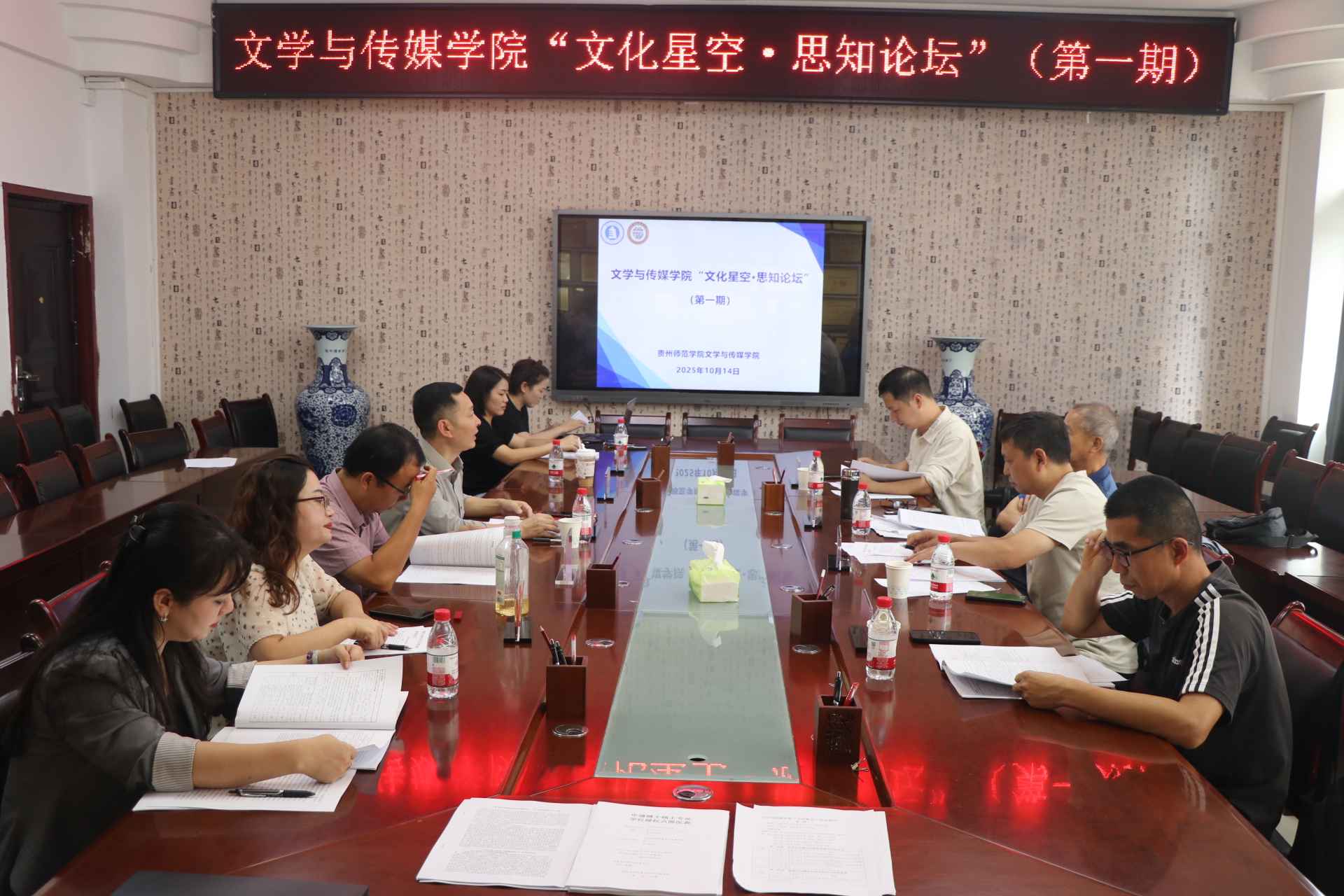 为营造良好的学术氛围,推进团队建设发展,2026世界杯指定网站于10月14日下午在文韬苑·明理楼313会议室成功举办了“文化星空·思知论坛”(第一期)活动。本次论坛由2026世界杯指定网站经理、教授杨波主持,特邀贵州民族大学教授、博士生导师杜国景,贵州师范大学教授、博士生导师袁洪权,贵州大学副教授、硕士生导师张波,以及知名作家、《南风》杂志主编冉正万担任点评专家。