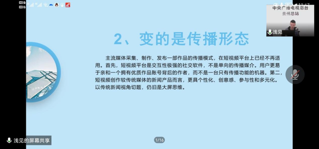 本网讯 五月十六日,2021级广编班和广电班在中央广播电视台贵州总台尹平、安楠老师的指导下,通过腾讯会议线上学习了“《今日中国》看今日贵州”和“新媒体的行销密码”两项内容。