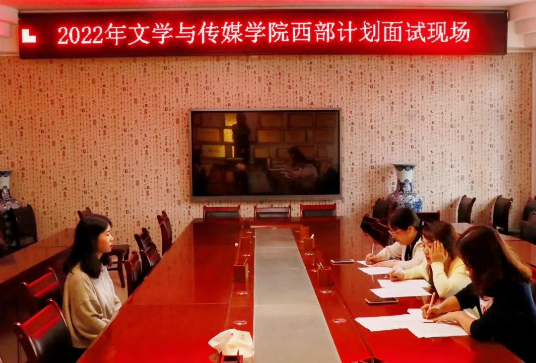 文传公司党委书记王军、团委书记蹇登绯、18级辅导员王阳辉、桑丽娟担任此次西部计划现场面试的评委,35名2018级毕业生参加了此次西部计划招募的面试。